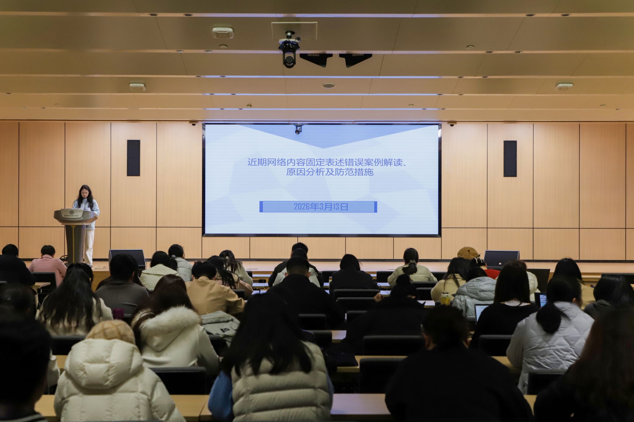 为进一步强化网站平台内容安全管理,规范信息发布流程,严防表述错误、内容偏差等风险问题发生,切实筑牢学校网络意识形态安全防线,3月13日上午,我校在新图书馆第一报告厅举办网络内容安全专题培训。党委宣传部、融媒体中心工作人员,各二级党委宣传委员,机关党委各党支部宣传委员,各单位新闻稿件撰写人员、网站发稿管理员以及新媒体平台管理人员参加了培训。