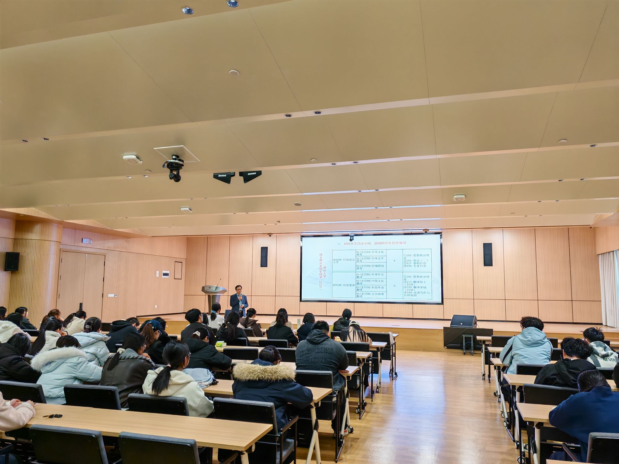 讲座中,葛教授结合当下日语专业发展现状,以郑州大学日语专业的改革为例,深入剖析了AI技术冲击、人才供需失衡等行业发展危机,同时围绕复合型人才培养、跨学科融合、新兴领域就业等方向,解读了日语专业在新文科建设背景下的发展契机与转型路径,为师生带来前沿的专业思考。