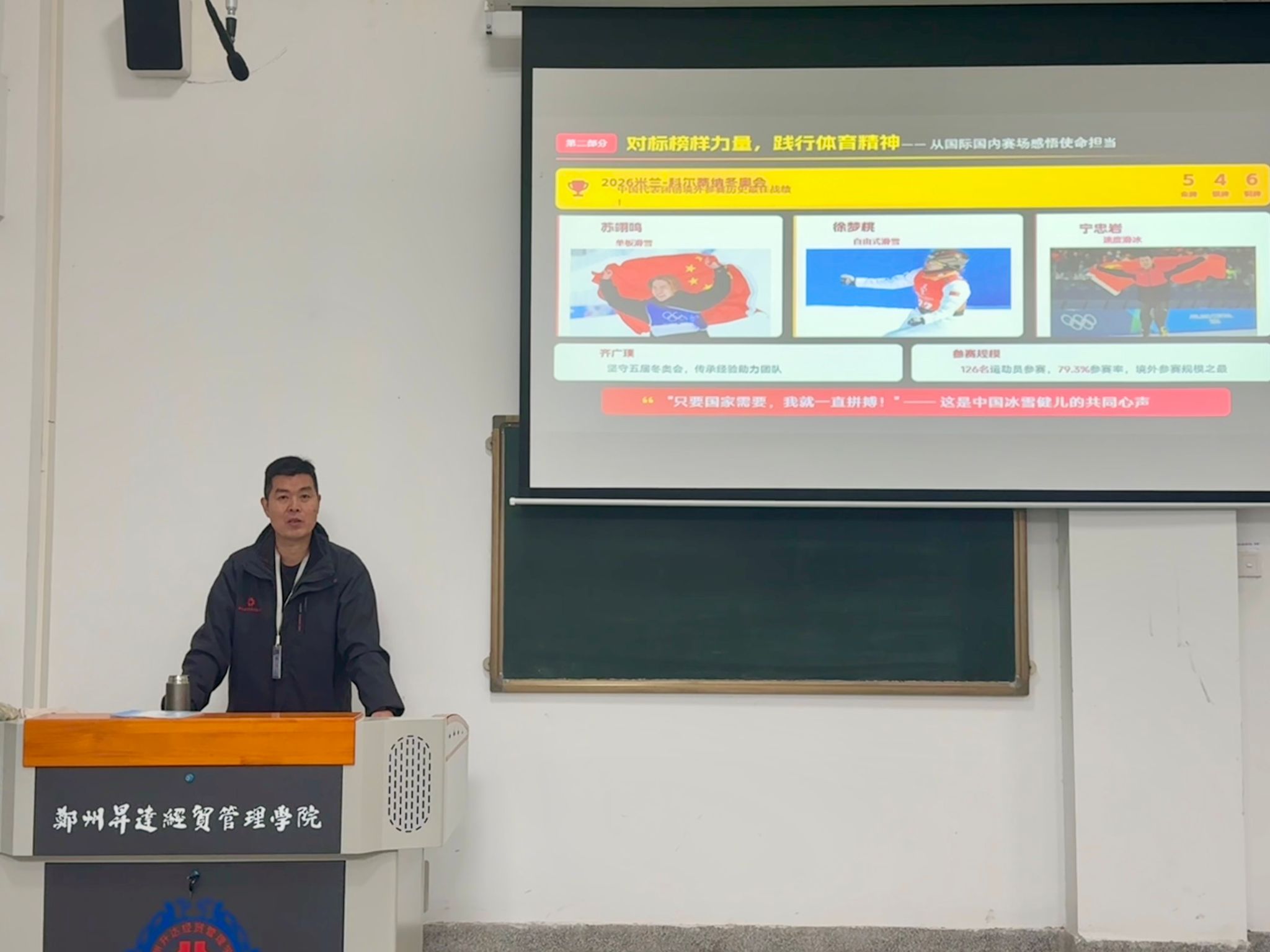 本次思政第一课内容丰富、催人奋进。同学们纷纷表示,将坚定理想信念,锤炼过硬本领,弘扬体育精神,努力成长为可堪大用、能担重任的栋梁之材,在全面建设社会主义现代化国家的新征程上,奋力书写无愧于时代、无愧于人民的青春华章。