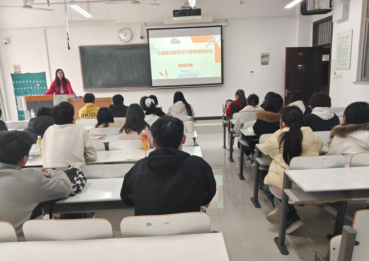 为进一步加强学院心理健康教育工作,提升心理委员的专业素养与履职能力,筑牢校园心理安全防线,建筑工程学院于3月24日成功举办了心理委员技能培训会。本次培训会以“心理危机预警与干预”为主题,由院彩虹桥心理辅导站站长段续洪主讲,全体心理委员参加了此次培训会。