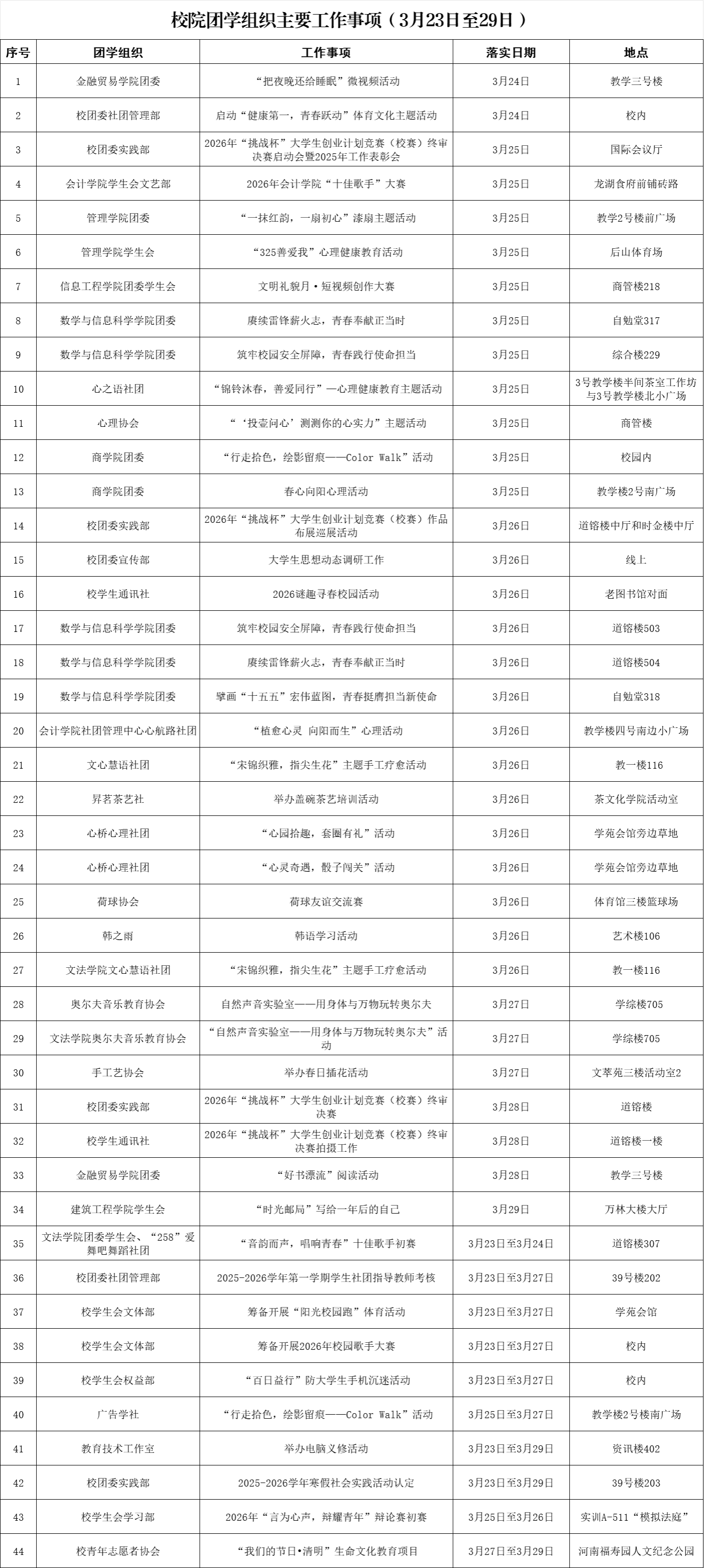 团学活动预告(3月23日-29日)