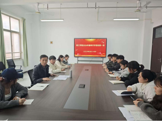 3月25日下午,建筑工程学院党委书记李松涛以“坚定信念、筑牢根基,在中国式现代化建设征程中建功立业”为题,在万林大楼424会议室为2025级大一新生代表讲授2026年春季学期开学思政第一课。