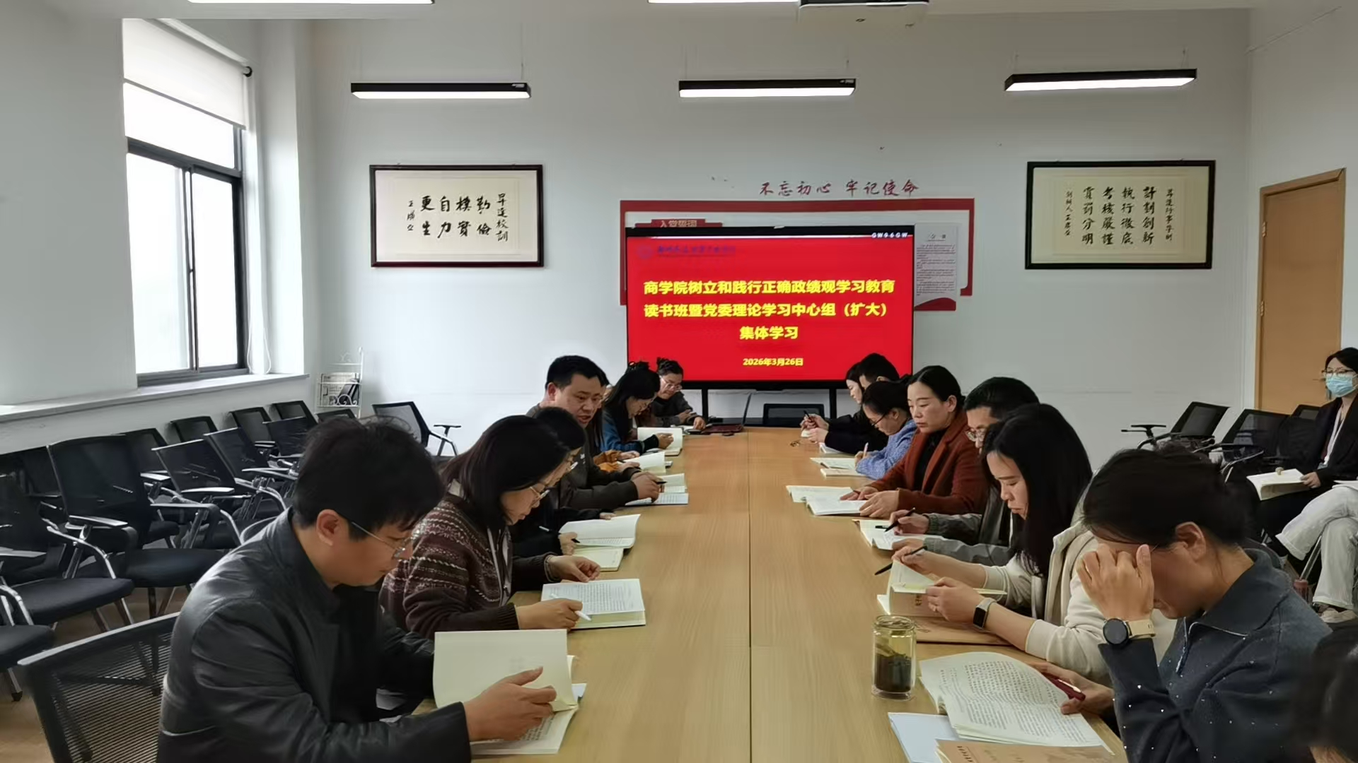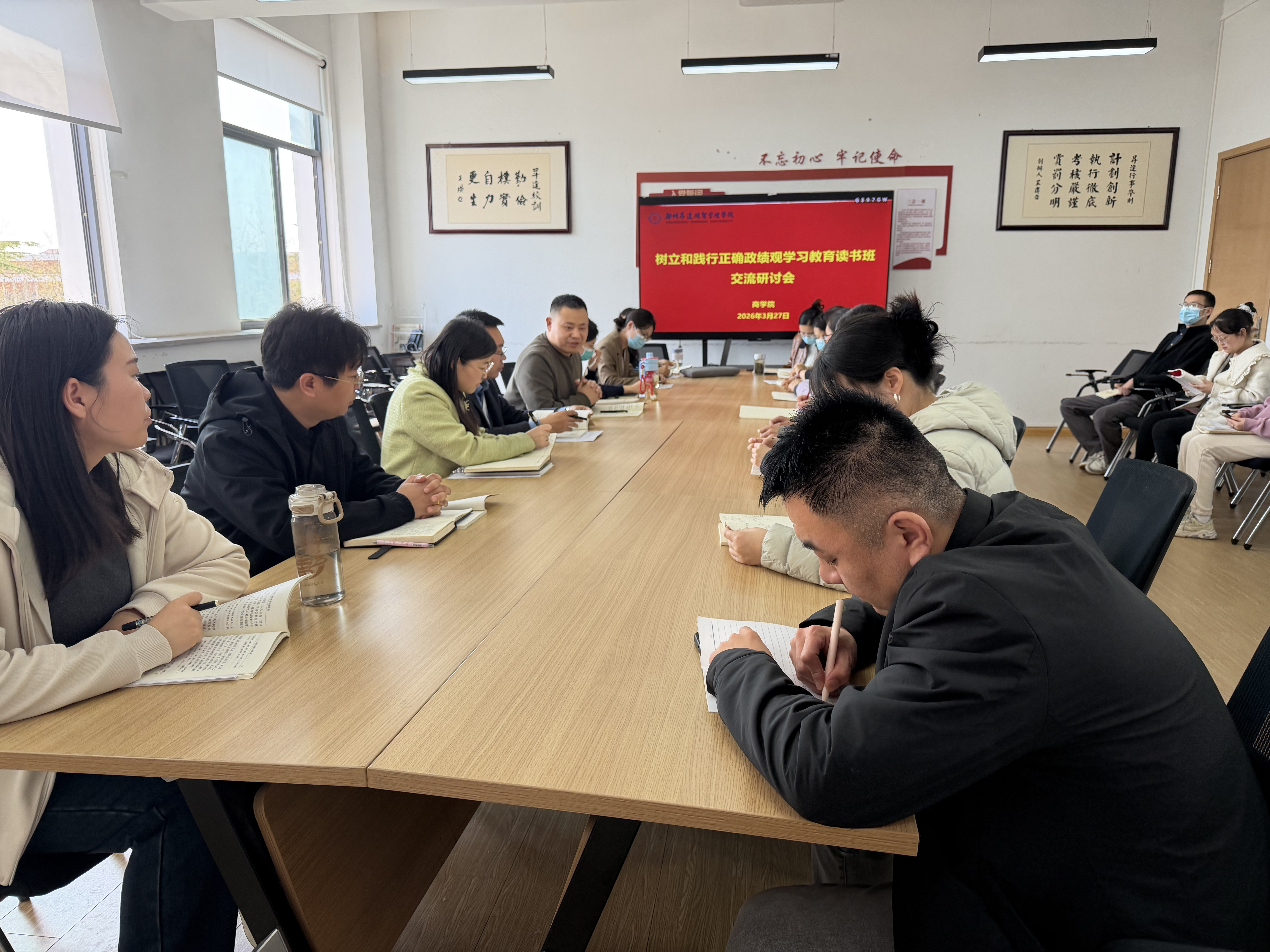 3月26日至27日,商学院举办树立和践行正确政绩观学习教育专题读书班暨党委理论学习中心组(扩大)集体学习会议。会议由院党委书记郭峰主持,学院党委委员、各党支部书记参加学习研讨。