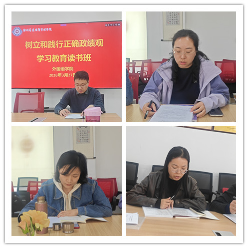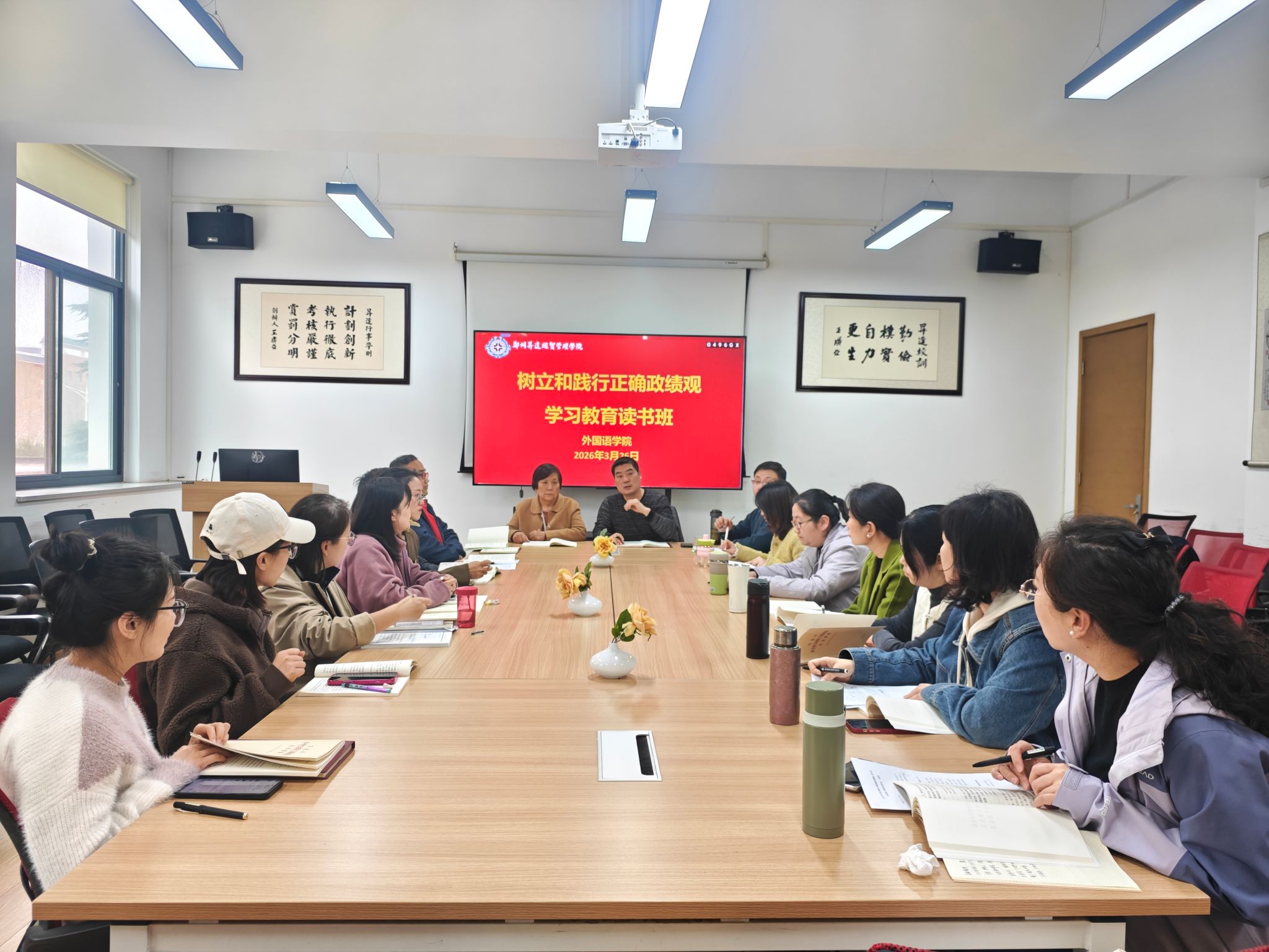 为深入贯彻落实校党委关于树立和践行正确政绩观学习教育工作部署,2026年3月26日至27日,外国语学院在院206会议室举办专题读书班。读书班由学院党委书记石皓召主持,院长王莉莉,全体党委委员、各党支部书记共20人参加。