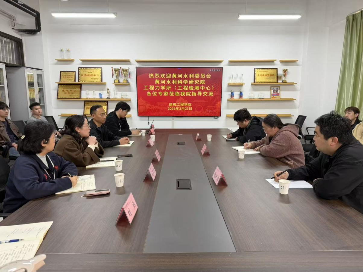 为深化产教融合、搭建校企人才对接桥梁,助力毕业生高质量就业,2026年3月25日,黄河水利委员会黄河水利科学研究院工程力学所(工程检测中心)主任兰雁(正高)、副主任杨浩明一行莅临我校建筑工程学院,开展招生宣讲暨校企合作交流活动。建工学院相关负责人、专业教师及学生代表参加活动。