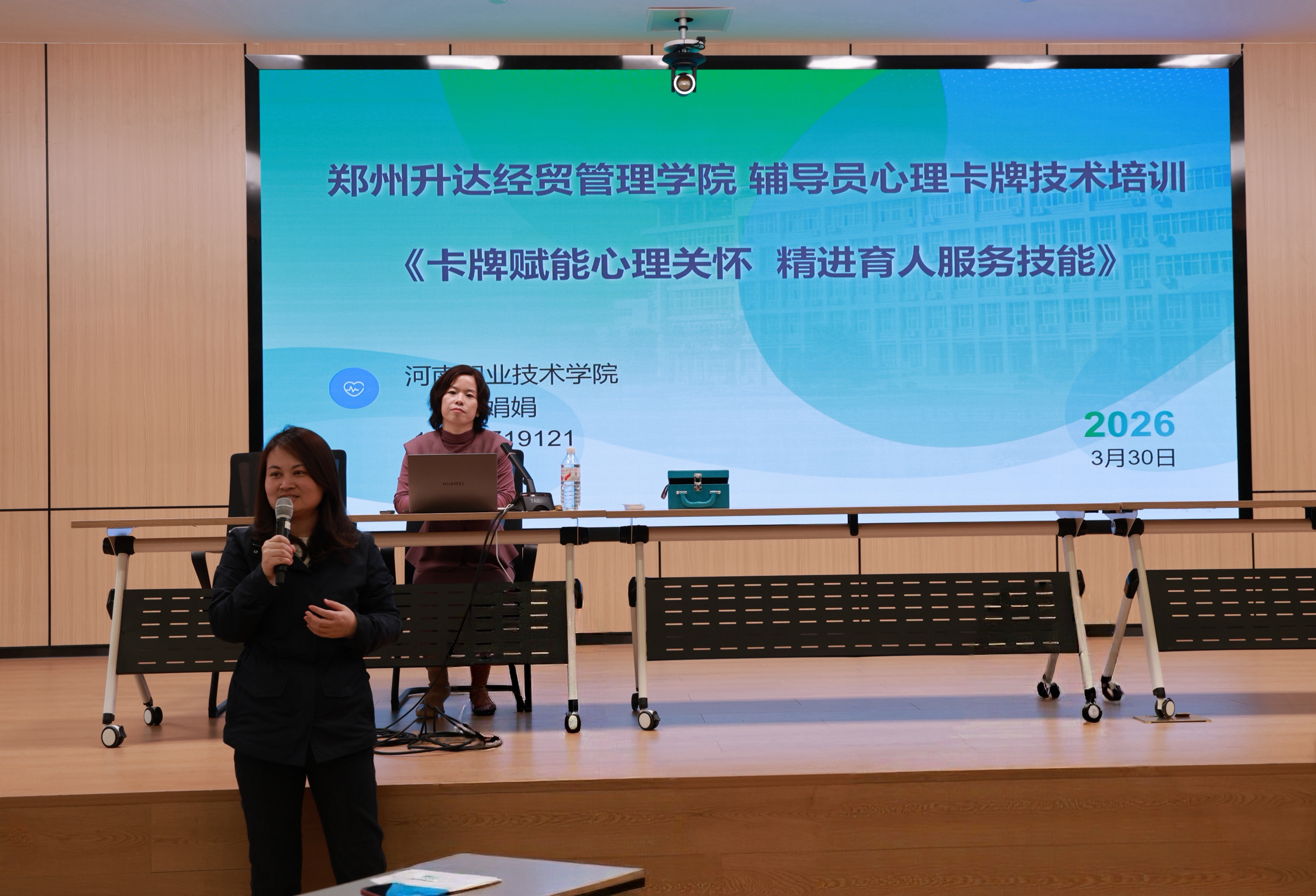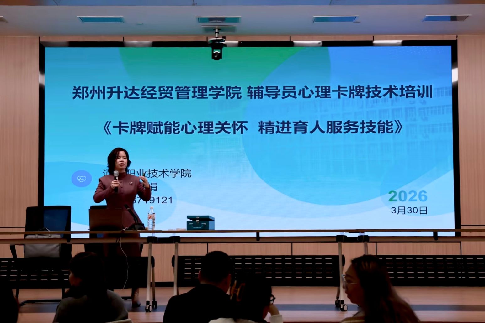 为提升辅导员心理健康教育专业能力,增强团队凝聚力与职业幸福感,3月30日,郑州升达经贸管理学院心理健康教育中心在图书馆第二报告厅开展了“大六人格卡牌”辅导员心理育人专题沙龙活动。本次活动邀请温娟娟教授担任主讲,心理中心胡学博科长主持,各学院辅导员参加了此次活动。