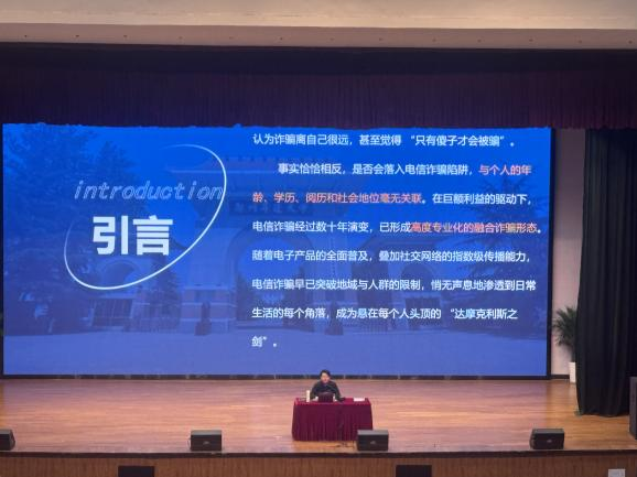 为进一步增强师生安全防范意识,筑牢校园安全防线,3月26日下午,文法学院在思源会馆举办防诈骗与消防安全专题培训,师生代表800余人参加了此次培训。