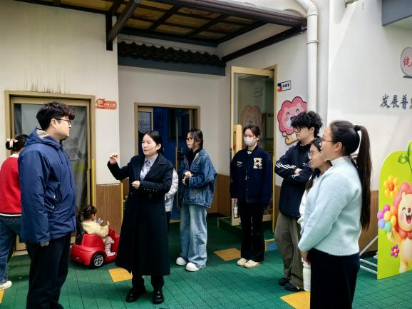 师生们实地参观了真爱幼幼园区的教学设施、功能教室及户外活动场地,全面了解园所的硬件条件、日常管理及师资配备情况。园区负责人详细介绍了托育中心的办园理念、课程体系及人才发展路径,让同学们对未来的工作环境与职业发展有了更加直观的认识。