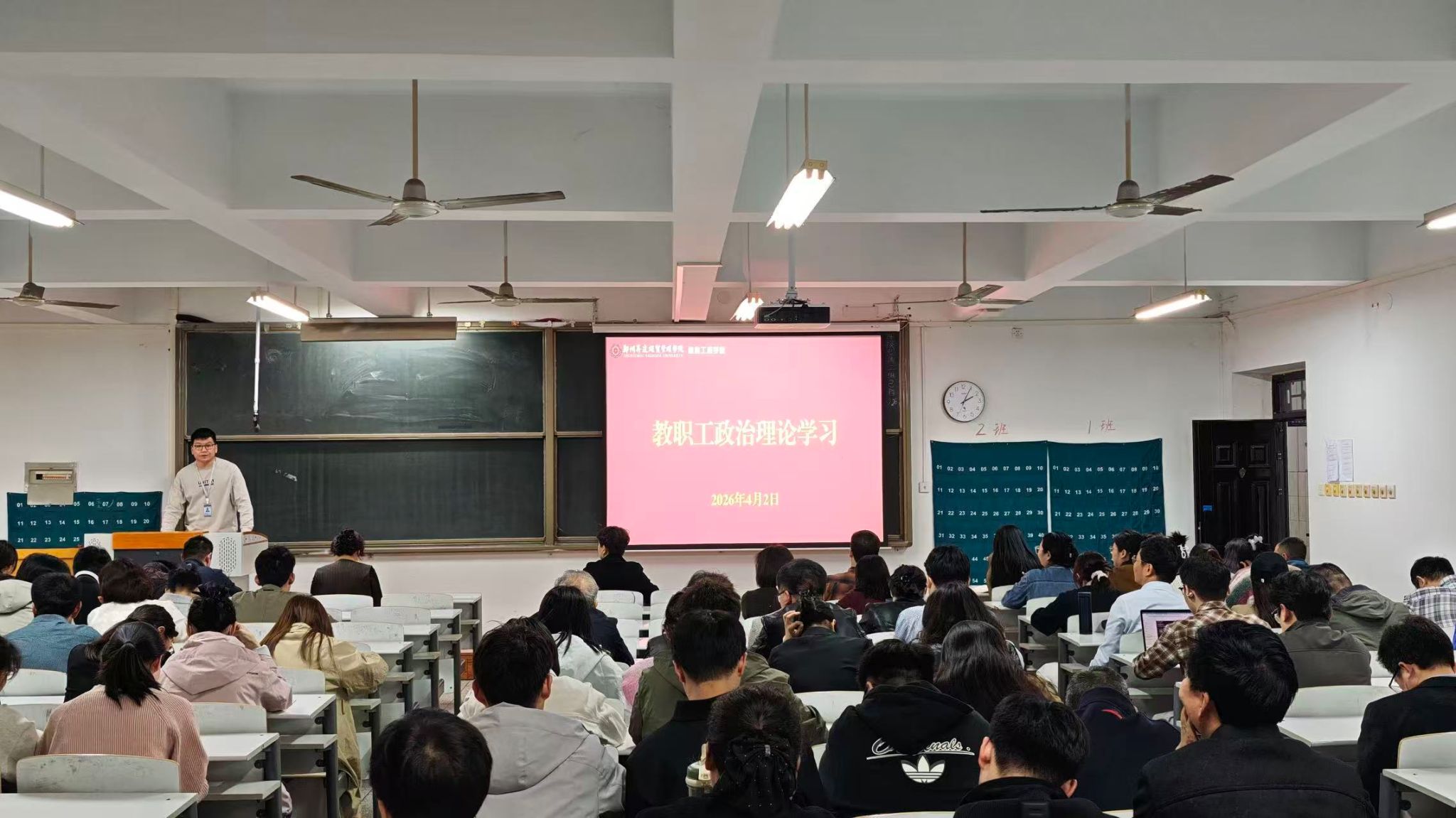 2026年4月2日下午,信息工程学院在资讯楼213教室召开本学期第三次教职工政治理论学习会议。会议由大数据人工智能专业学生党支部王强主持,学院全体教职工参会。