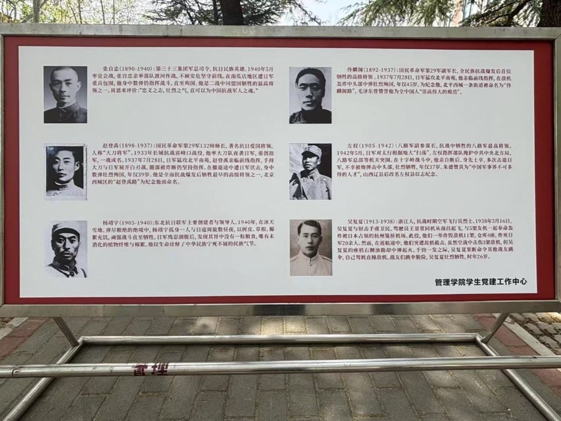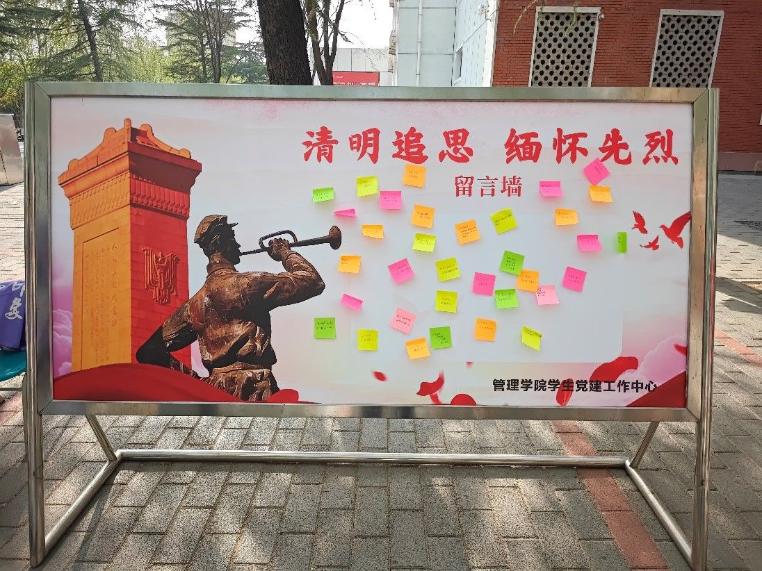 清明寄哀思,薪火传精神。为深切缅怀革命先烈丰功伟绩,传承红色基因,厚植爱国主义情怀,4月3日,管理学院学生党建工作中心在教学2号楼前举办“清明追思,缅怀先烈”主题活动。本次活动面向全校师生开放,以事迹展板、留言寄语为主要形式,引导广大师生铭记历史、致敬先烈、勇担使命。