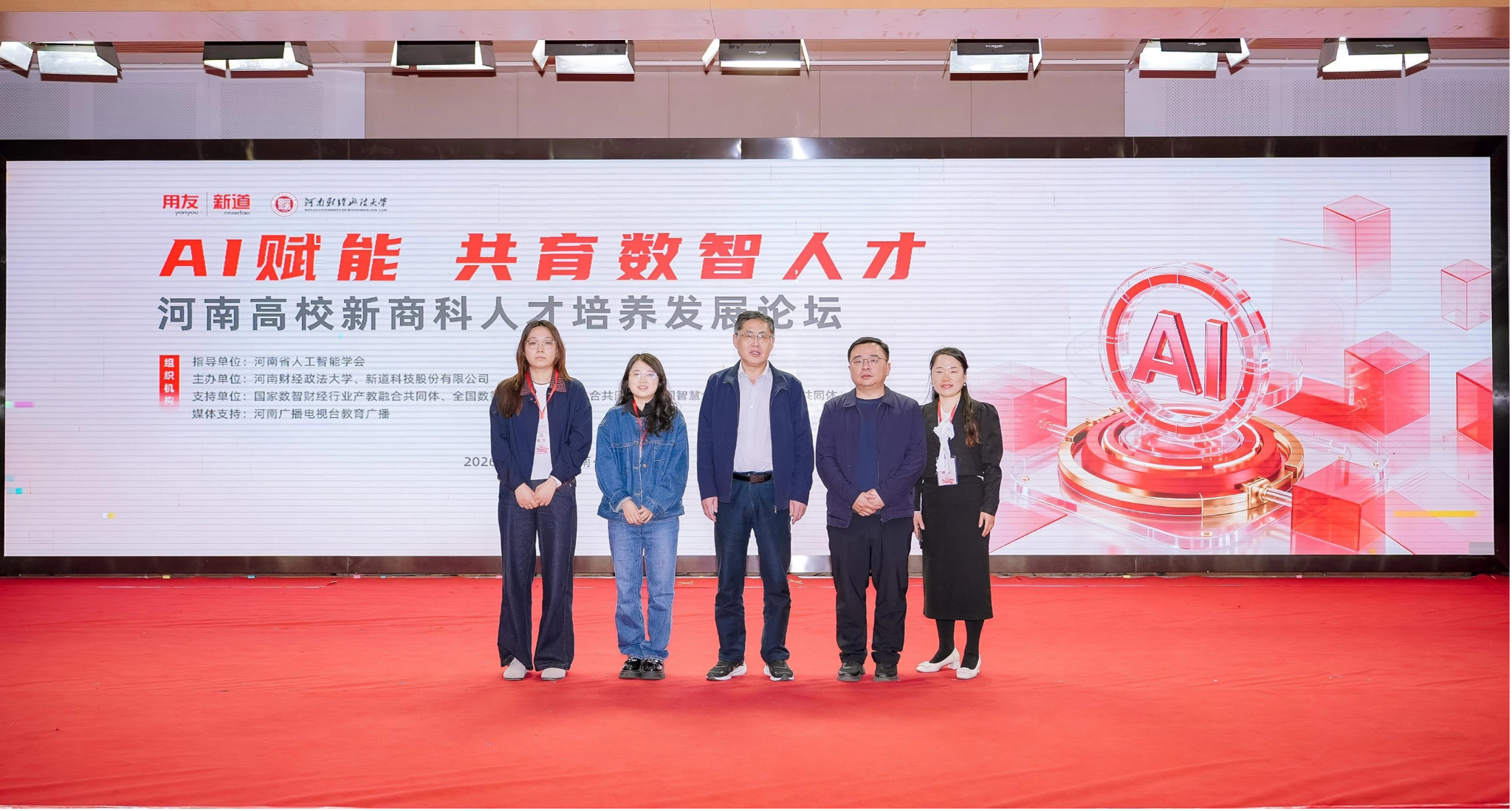 为积极探索AI技术赋能商科教育的新路径,推动数智化财会人才培养与产教深度融合,4月3日,会计学院院长王宝庆、副院长张新成、数智化教研室主任田丽丽、教师贺岚、张洁一行5人赴河南财经政法大学参加“AI赋能 共育数智人才——河南高校新商科人才培养发展论坛”。本次论坛由河南财经政法大学与新道科技股份有限公司联合主办,聚焦AI赋能商科教育、数智化人才培养、产教深度融合等核心议题,来自省内外的专家学者、高校代表齐聚一堂,共同探讨AI时代商科教育的变革趋势与创新路径。