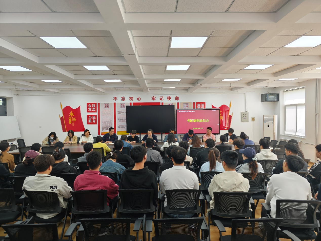 会议伊始,院长周湘贞首先作动员讲话。她结合当前考研整体形势,分析了调剂工作的重要性与紧迫性,鼓励同学们坚定信心、主动作为,充分利用学院提供的各类信息资源,积极对接目标院校,争取理想的升学结果。她表示,学院将全力做好服务保障,为同学们顺利调剂保驾护航。