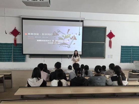 活动伊始,高嫄媛同学围绕本次主题展开宣讲,迅速吸引同学们的注意力。随后,社团同学围绕“创业路上的‘隐形陷阱’”展开核心宣讲,结合当前AI诈骗升级、刷单返利、虚假投资等高发诈骗类型,用真实数据与典型案例拆解诈骗分子的作案手法。从“AI换脸冒充合作方”的新型骗局,到“提前支付投资费”的经典陷阱,社团同学用通俗的语言剖析诈骗逻辑,提醒同学们牢记“不轻信、不透露、不转账、多核实”的反诈原则,警惕创业途中的“甜蜜陷阱”。活动接近尾声,孟丽君老师和范腾飞老师分别总结了创业反诈核心要点,梳理创业过程中常见的风险点与应对方法,帮助同学们巩固所学知识。参与活动的同学纷纷表示宣讲会干货满满,不仅认清了创业路上的诈骗手法,更掌握了实用的反诈技巧,为未来创业之路筑牢了安全屏障。