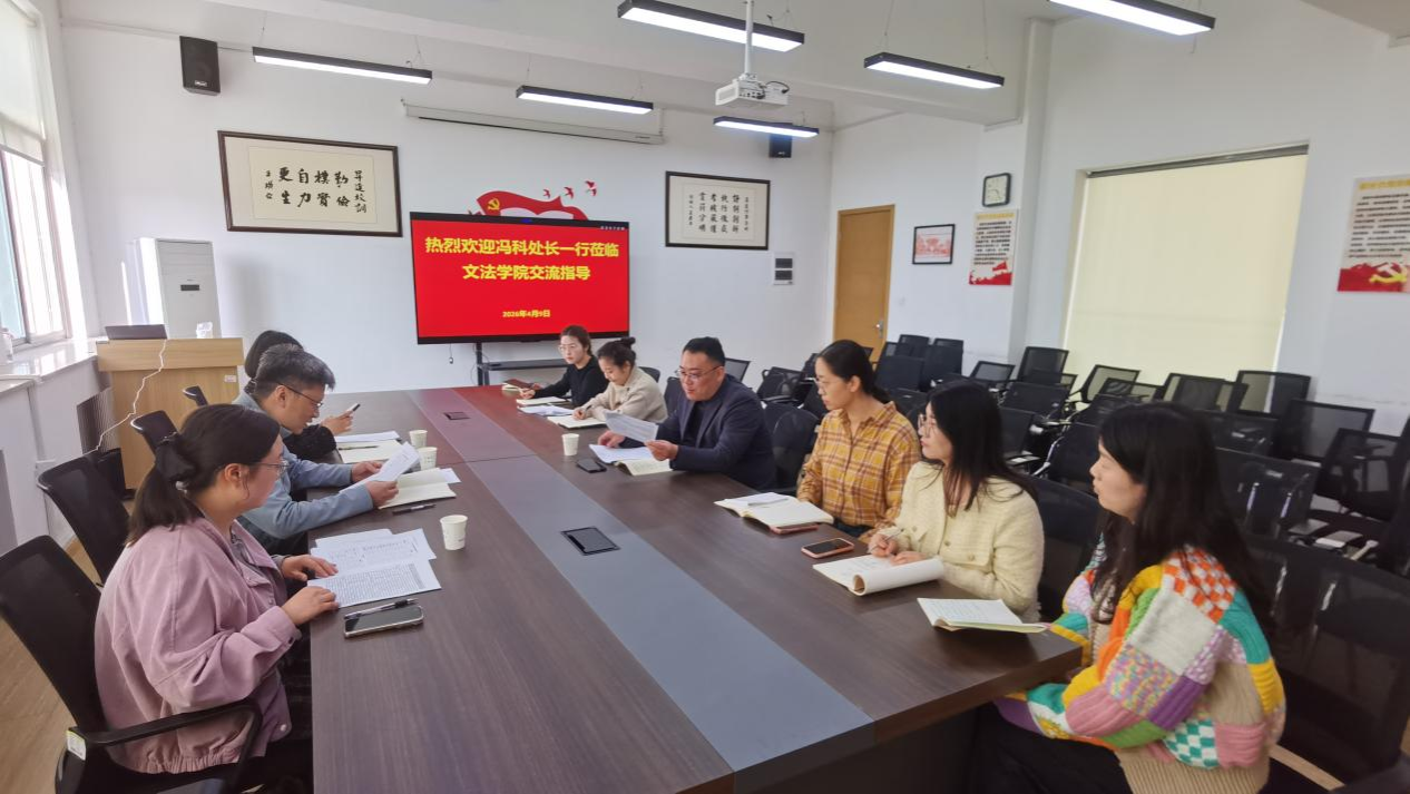 冯科处长认真听取了汇报,对文法学院在2026届毕业生就业工作中付出的努力和取得的阶段性成效给予充分肯定。结合学校就业工作整体部署和文法学院专业特色,他对下一步就业工作提出指导意见:一是要进一步提高政治站位,深刻认识当前就业形势的严峻性和紧迫性,持续把就业工作抓实抓细;二是要强化精准施策,针对不同就业意向的毕业生细化分类指导,重点加强对未就业毕业生、困难毕业生的“一生一策”精准帮扶,提升就业服务的针对性和实效性;三是要深化校企合作,主动对接校友企业资源,结合文法类专业特点拓宽就业渠道,丰富就业岗位供给。
