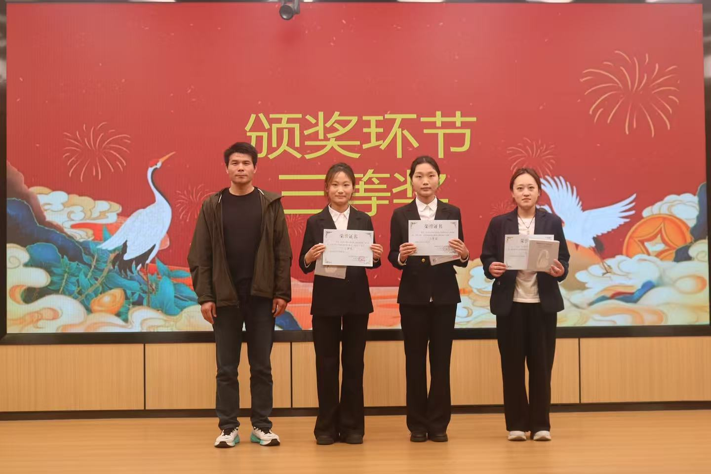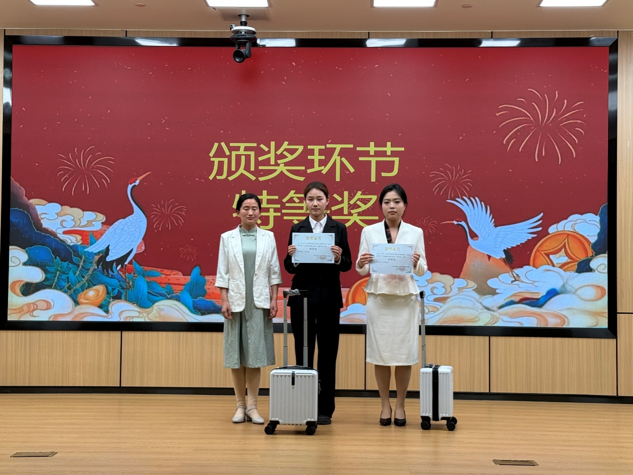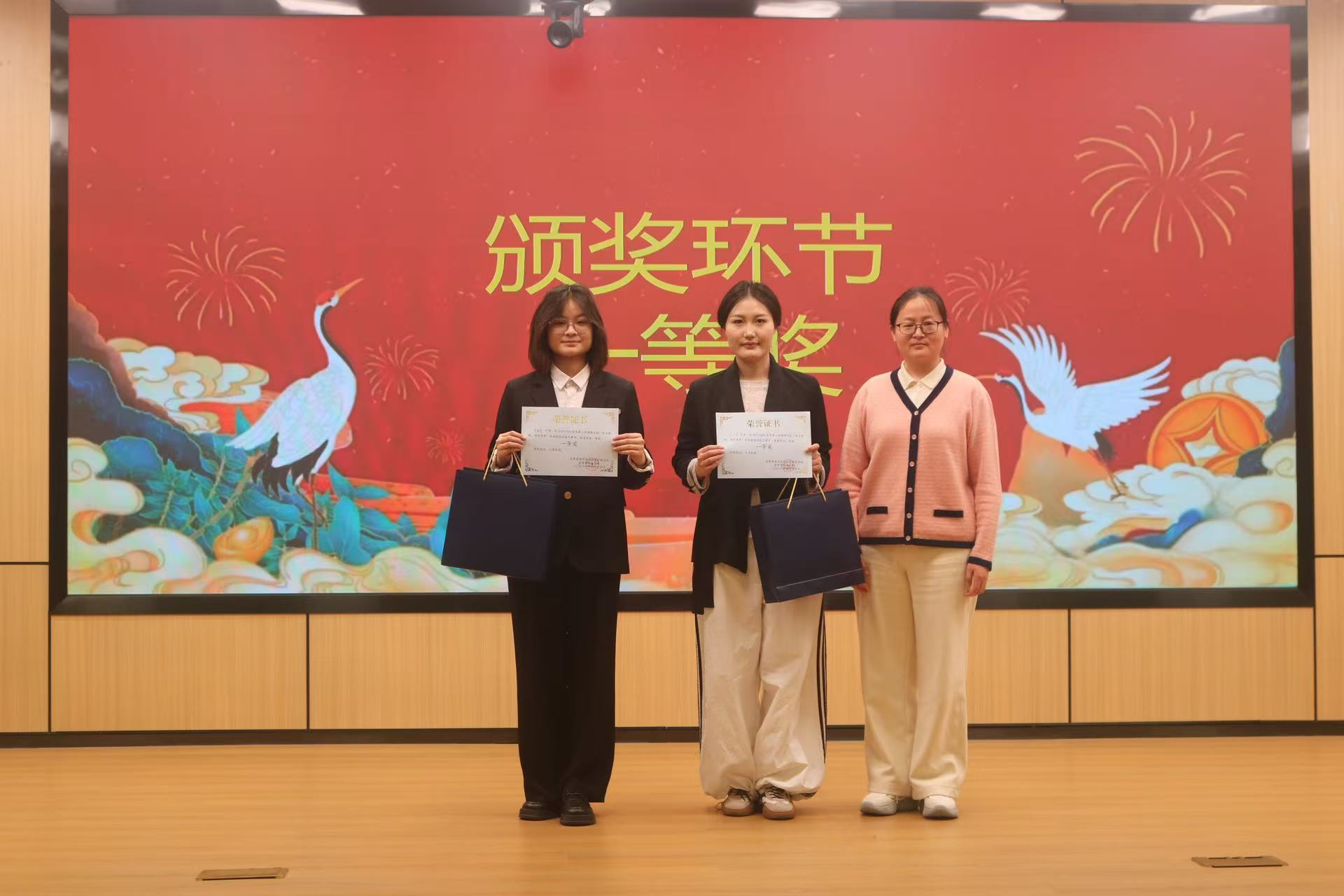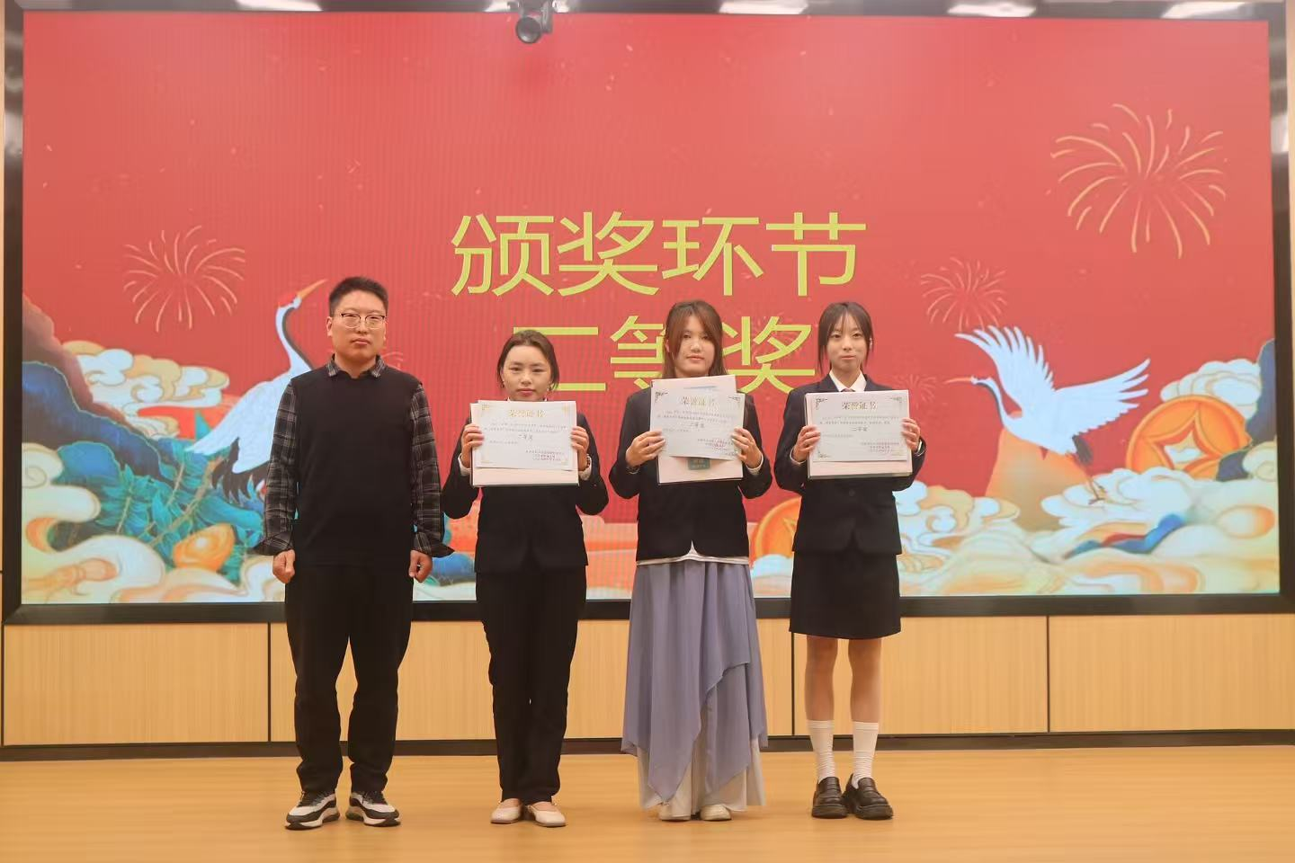 比赛最后,评委老师们为选手颁奖,特等奖获得者为李一朵、张晓蕾,由吕圆老师为其颁奖;一等奖获得者为孙忆梦、李佩莲,由王宇老师为其颁奖;二等奖获得者为李若琳、刘国庆、兰欣莉,由李昭惠老师为其颁奖;三等奖获得者为邓帆、牛志鑫、翟思佳,由任素伟老师为其颁奖。