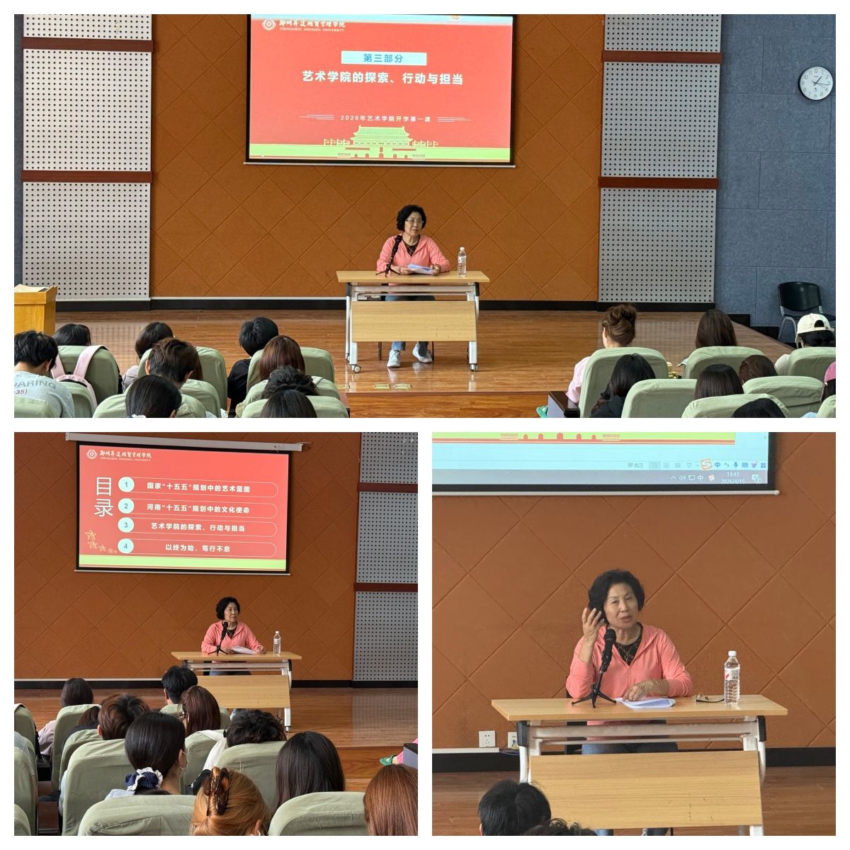 课堂上,吴院长回顾了艺术学院近年来的实践成果:师生通过排演《黄河大合唱》、挖掘河南红色民歌、举办古诗词艺术歌曲大赛等方式传承文化基因;积极探索AIGC赋能艺术教育,推动科技与艺术深度融合;组织志愿者走进养老院开展慰问演出,以艺术服务社会。她强调,艺术学院将继续围绕国家战略需求,培养兼具专业素养、数字能力与人文情怀的艺术人才。