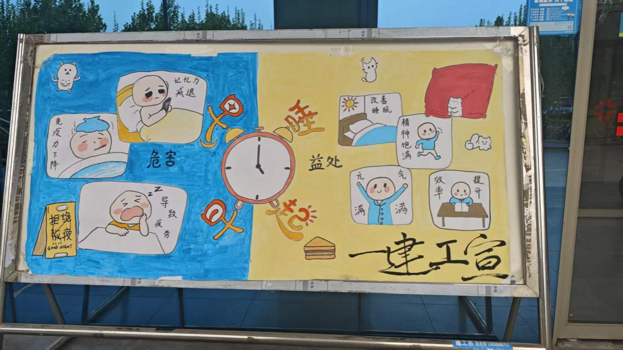 学院制作早睡早起宣传展板和公众号推文,引导学生养成早睡早起的好习惯。