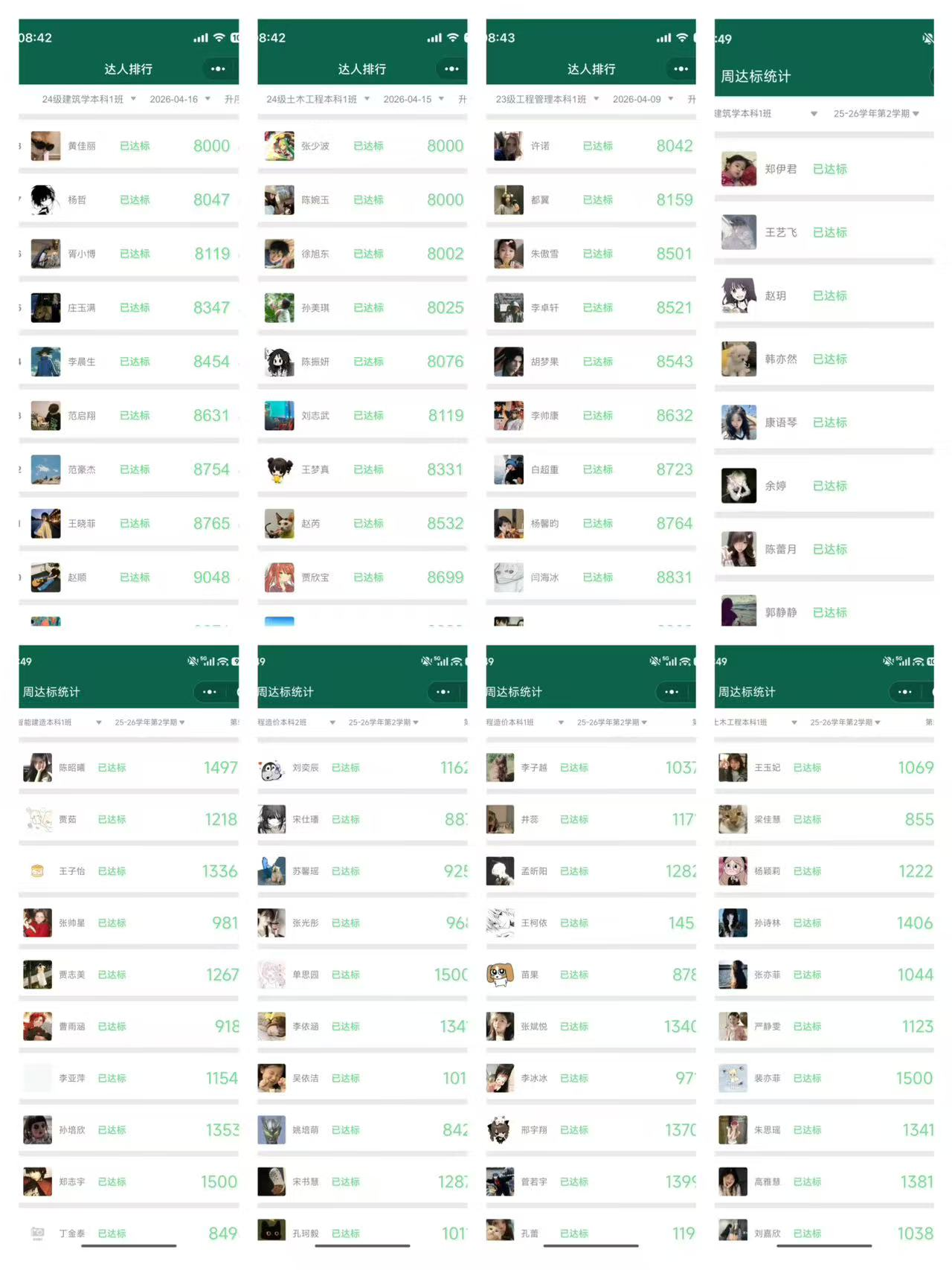 经过一个月的宣传教育工作,学院非毕业班学生8000步达标率均在90%以上,学生能够自觉锻炼身体,促进自身身体健康。