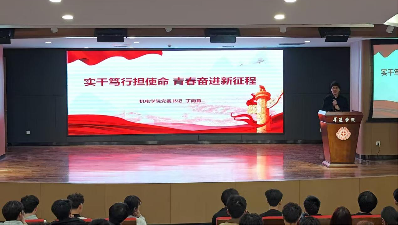 2026年4月20日,机电学院党委书记丁向育以“实干笃行担使命 青春奋进新征程”为题,在双创大讲堂为管理学院、机电学院、体育学院第二十三期党课学员讲授党课。