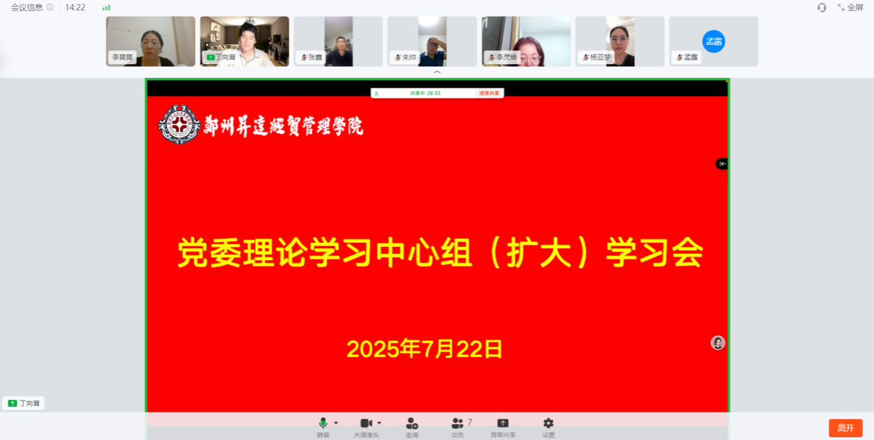 7月22日晚,机电学院在钉钉上召开党委理论学习中心组(扩大)线上学习会。学院党委委员、党支部书记参加了会议。会议由院党委书记丁向育主持。