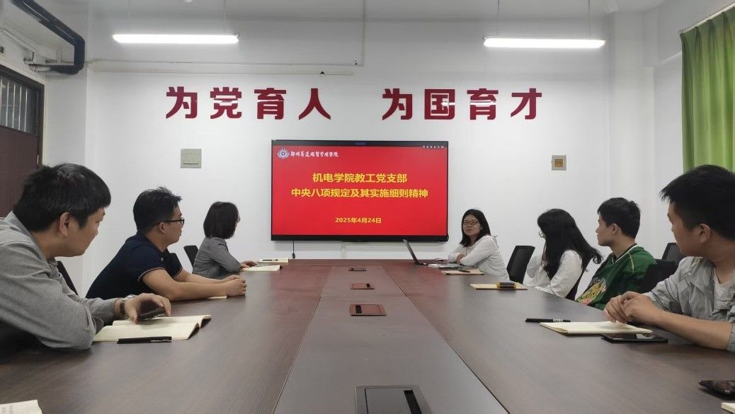 为深入贯彻中共中央八项规定精神,持续深化党风廉政建设,机电学院教工党支部于4月24日召开专题学习+警示教育会,机电学院教工党支部全体党员参加会议,会议通过理论学习与警示教育相结合的方式,助力全体党员筑牢思想防线,强化纪律意识。