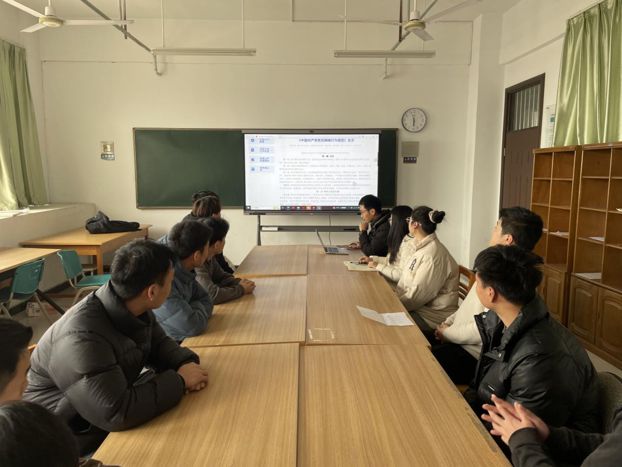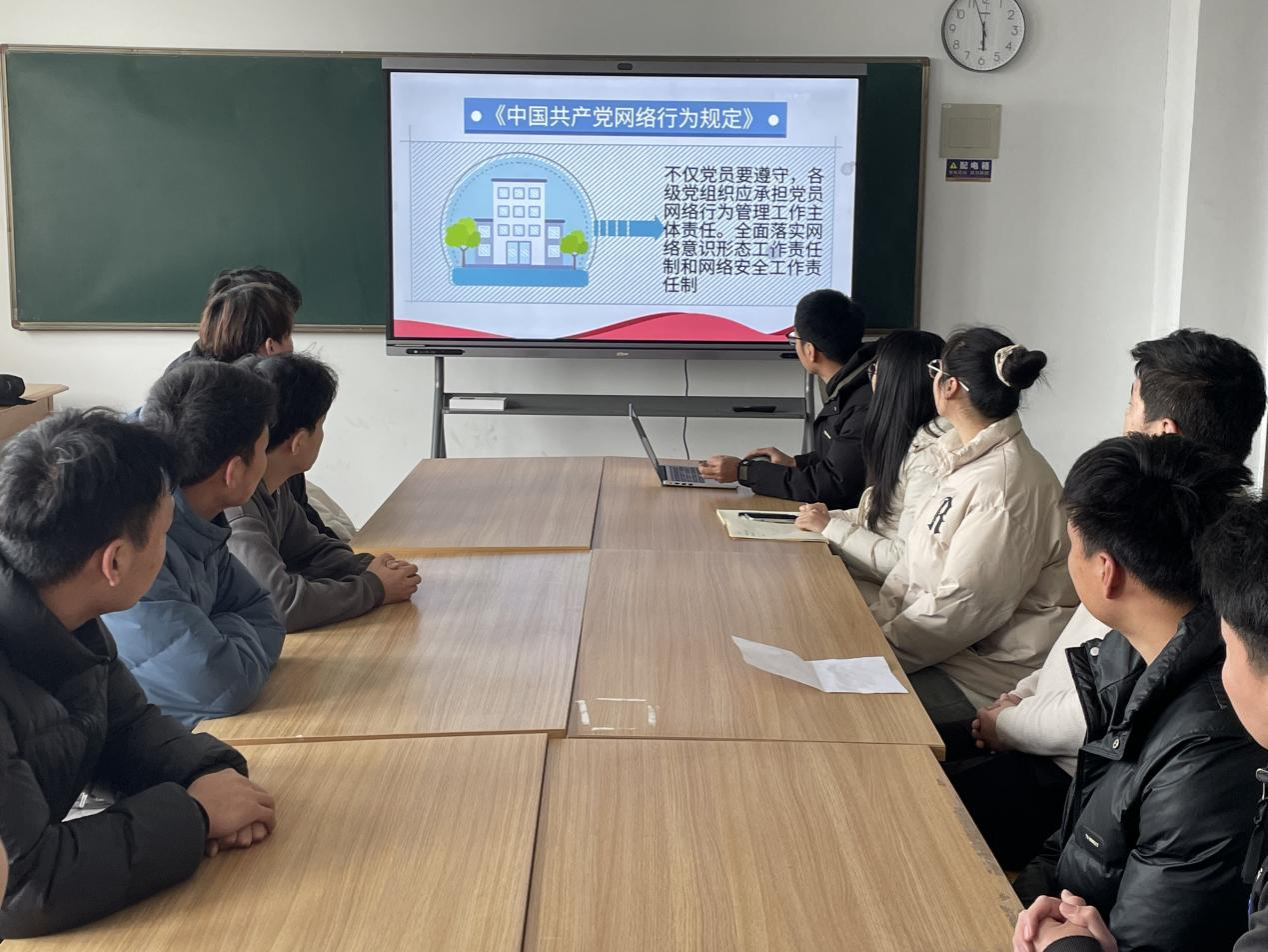 为进一步规范党员干部网络行为,充分发挥党员干部在网络空间的模范带头作用,积极营造健康向上、风清气正的网络环境。12月19日,机电学院学生第一党支部召开12月主题党日活动——规范网络行为,传播网络正能量,会议由支部书记张鑫主持,全体党员同志参加会议。