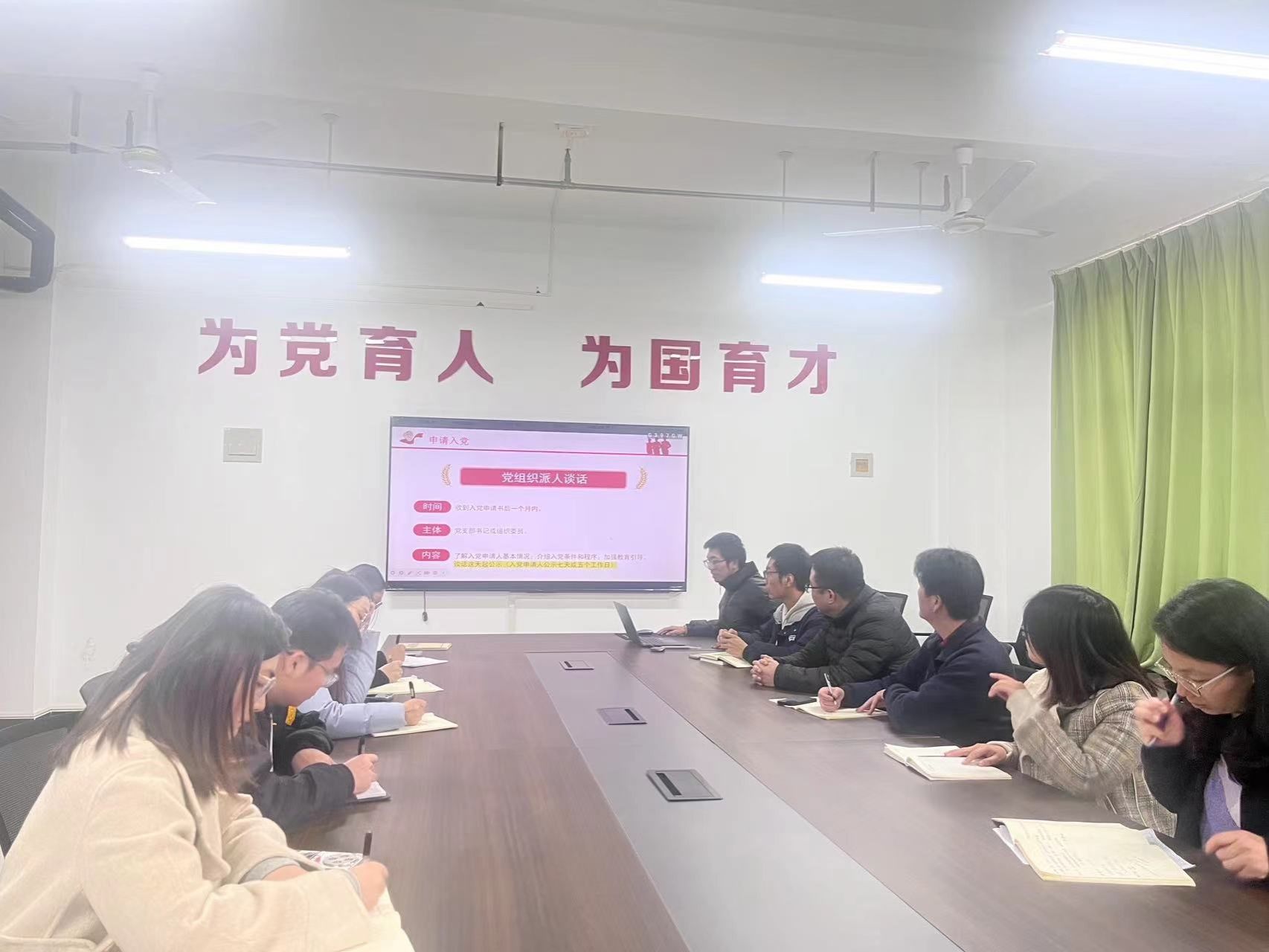 丁向育书记强调,发展党员工作是一项政策性很强的工作,也是党委抓基层党建工作的一项主要责任,各支部要严格按照流程操作,严把入口关。同时,要加强对入党积极分子的教育和培养,不断提高他们的党性修养和理论水平,使他们更好地理解和认同党的宗旨和纪律,为成为一名合格的共产党员打下坚实基础。