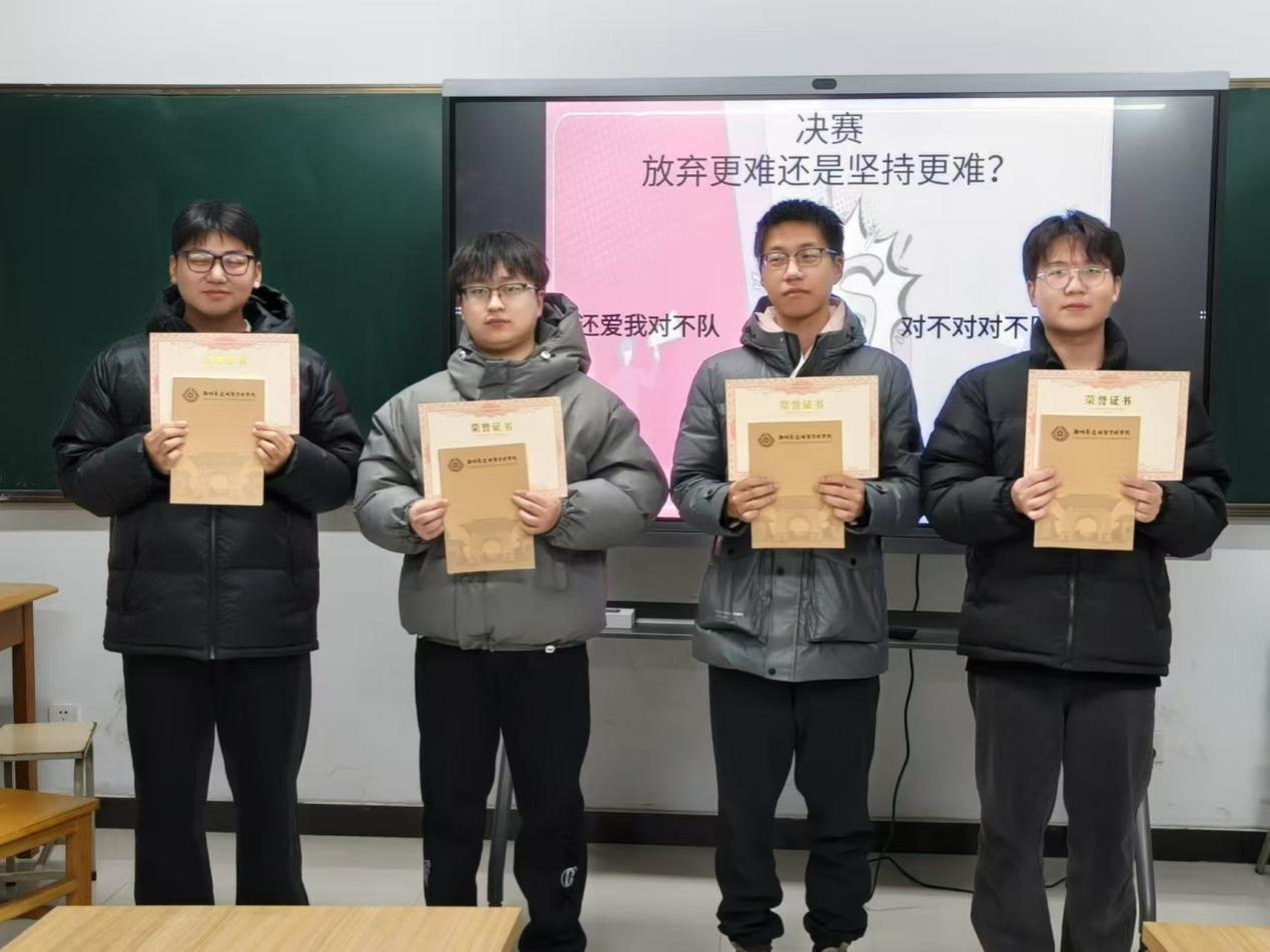 为激发学生的思辨能力与表达能力,丰富校园文化生活,机电学院党委于11月15日-28日成功举办了2024年“思辨青春 筑梦未来”辩论赛。辩论赛历时半个月,经过初赛、复赛的激烈角逐,最终“对不对对不”队和“你还爱我对不”队脱颖而出,会师决赛。