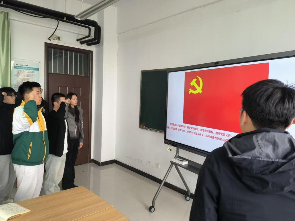 首先,支部宣传委员李鑫带领全体党员重温入党誓词,大家紧握右拳,面对鲜红的党旗,再次庄严宣誓,表达对党的忠诚和对人民的热爱。随后,全体党员集中观看了纪录片《百年奋斗为人民》。
