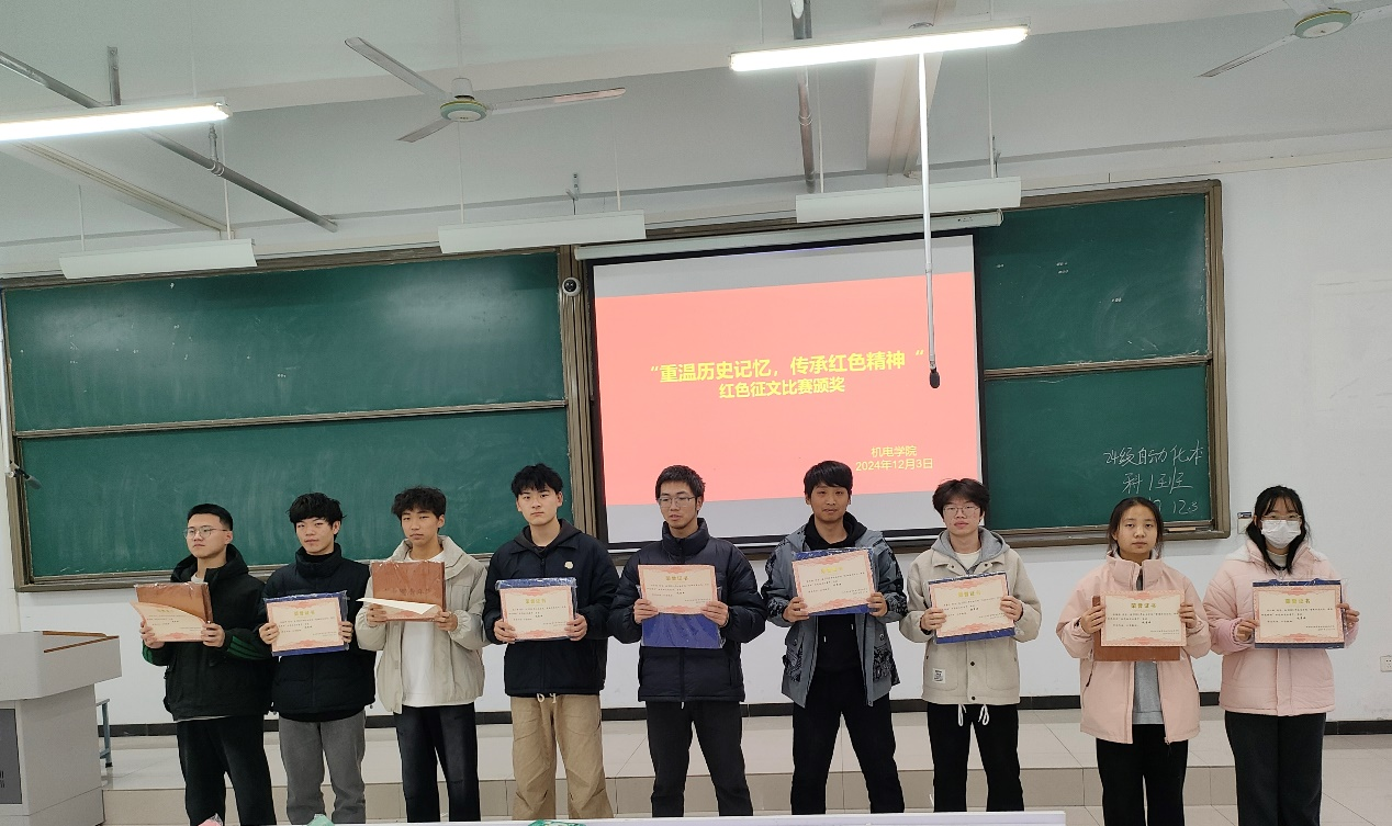 为激发学生对红色历史的深入了解与思考,传承和弘扬红色精神,增强爱国主义情感。11月19日,机电学院党委成功举办了以“重温历史记忆,传承红色精神”为主题的红色征文比赛。