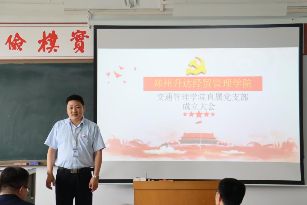 首先,由王凯同志宣读中共郑州升达经贸管理学院委员会“升达党发{2021}18号”通知。为进一步优化我校党组织设置,实现党的组织和党的工作有形有力有效覆盖,根据《中国共产党章程》《中国共产党普通高等学校基层组织工作条例》规定,结合我校实际,经校党委会议研究,决定成立交通管理学院直属党支部。