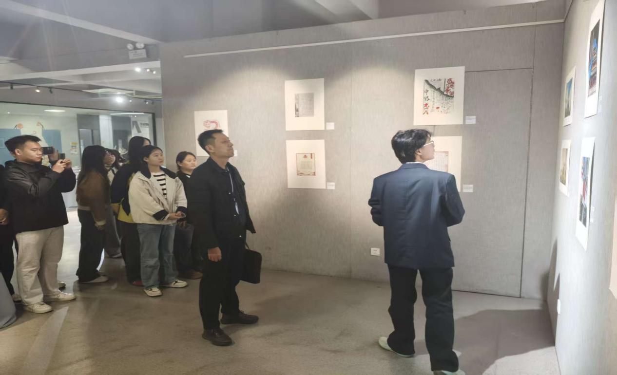 展厅内,艺术学院讲解员介绍了丰富的书画、摄影、掐丝及拓印画等艺术作品,展示了拓印画的制作过程,并邀请部分老师和学生亲自体验,所有作品都展现了中华民族多元一体的悠久历史渊源、精彩的文化交融成果,以及各民族共同拼搏、共同繁荣的辉煌历程。此次参观教师们和同学们认真聆听,深刻领会中华民族共同体意识,坚定了对伟大祖国、中华民族、中国文化、中国共产党、中国特色社会主义的认同。