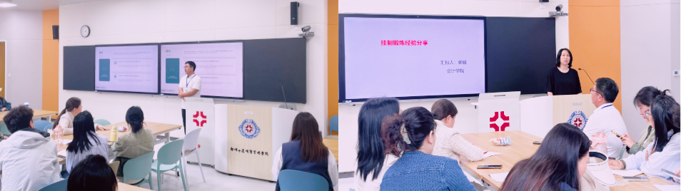 活动邀请往批次挂职锻炼教师代表分享挂职经验。商学院姜培培着重就考核要求分享了个人挂职心得。金融贸易学院张鑫结合自身专业,以图文的形式详细展示了挂职工作细节,并重点就跨境电商运营分享了个人的心得体会。会计学院郭健针对挂职锻炼考核任务中的横向合同签订环节进行分享,条分缕析地讲解了申报与签订横向课题合同的详细步骤。金融贸易学院安丽平以自身横向课题研究内容为例,分享汇报了“基于用户行为分析的精准健康服务推荐模型研究”的成果。文法学院冯艳艳以自身前往教育机构学习交流经验为例,为当前学校师范类专业挂职的教师提供了可参照的思路。