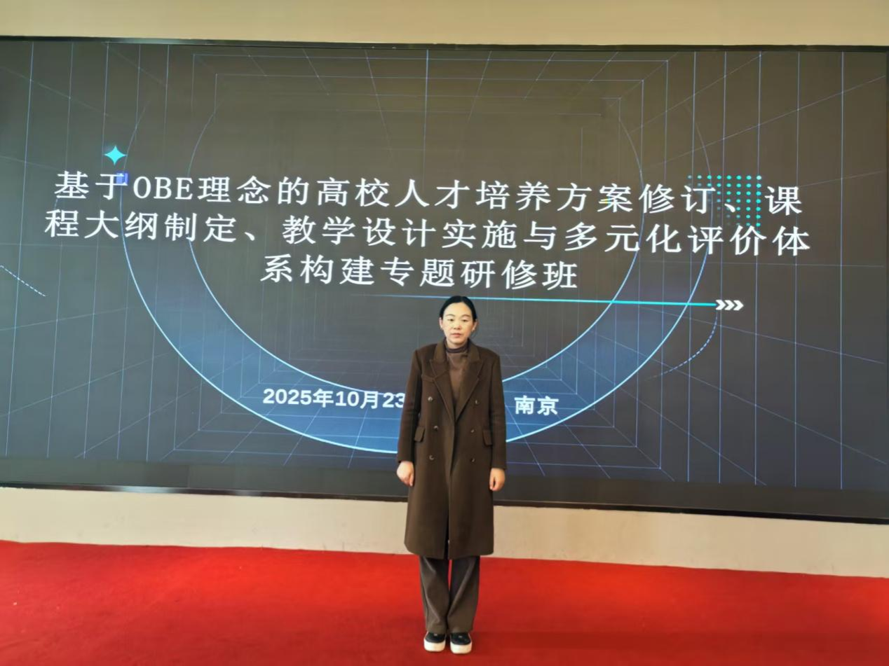 近日,商学院选派跨境电子商务专业教师常春燕赴南京参加了由北京国培华智教育科学技术院主办的“基于OBE理念的高校人才培养方案修订、课程大纲制定、教学设计实施与多元化评价体系构建专题研修班”。此次研修班于2025年10月23日至26日在南京玄武湖美居酒店举行,吸引了全国多所高校教师参与。