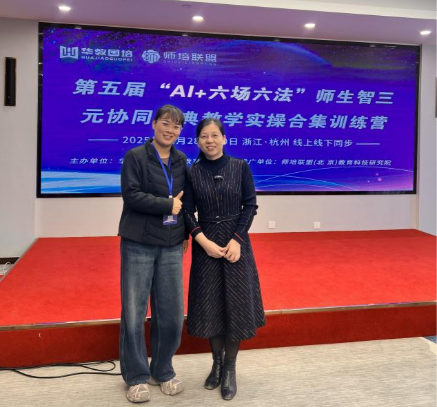 为主动应对人工智能技术对教育领域的深刻变革,探索“AI+教育”深度融合的创新路径,我院教学干事刘玲芳老师于2025年11月28日至30日,赴杭州参加了由华教国培(北京)教育学研究院主办的第五届“AI+六场六法”师生智三元协同经典教学实操合集训练营。