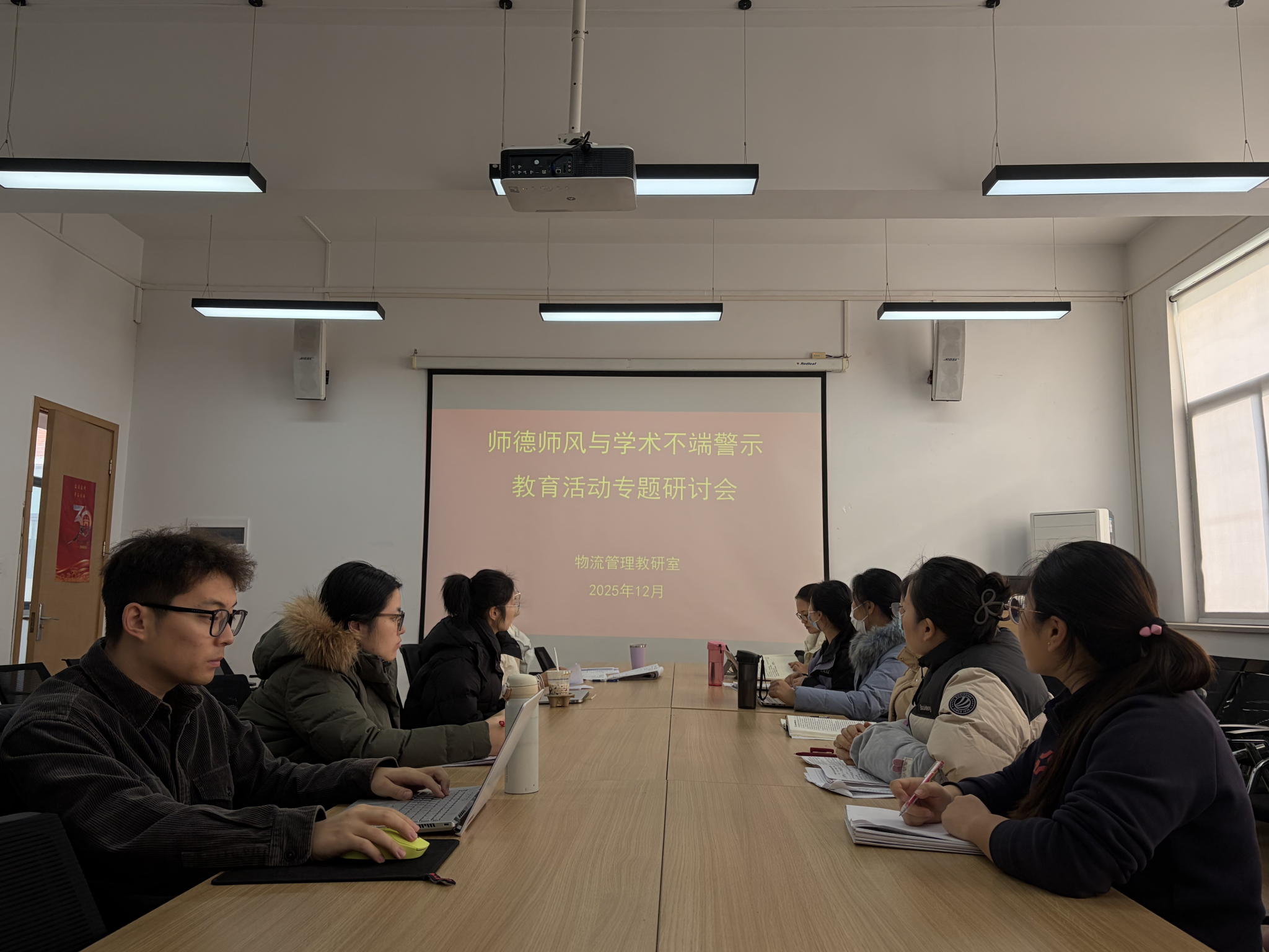 为深入贯彻落实全国教育大会精神及新时代高校教师职业行为十项准则,进一步加强师德师风建设,筑牢学术道德防线,12月18日下午,物流管理教研室召开了“师德师风与学术不端警示教育活动”专题研讨会。此次会议由教研室主任艾丹丹主持,教研室全体教师参加。会议旨在通过政策学习、案例警示与专题研讨,引导教师恪守学术规范,弘扬高尚师德,营造风清气正的育人环境。