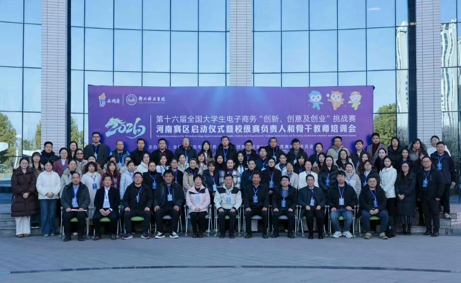 1月9日下午14时,我院电子商务教研室主任叶宝银、专任教师卢瑞娜赴郑州科技学院艺术北楼音乐厅,参加第十六届全国大学生电子商务“创新、创意及创业”挑战赛(以下简称“三创赛”)河南赛区启动仪式暨校级赛负责人和骨干教师培训会。会议汇聚了来自河南省多所高校的校级赛负责人和骨干教师。我院教师参加本次会议旨在进一步提升对“三创赛”赛事规则与动向的理解深度,系统掌握项目指导方法与赛程组织要求,加强与省内院校及企业资源的交流协作。
