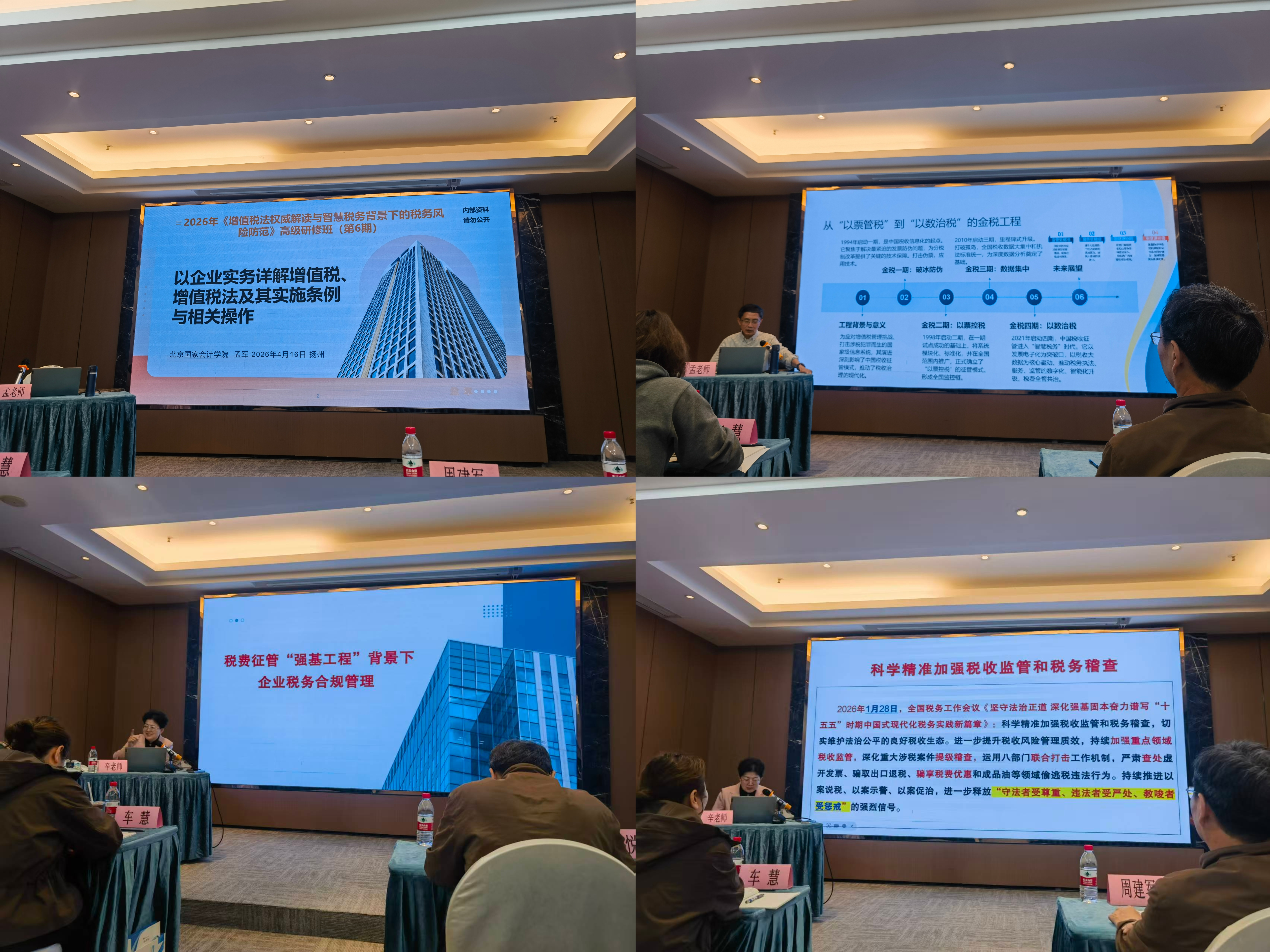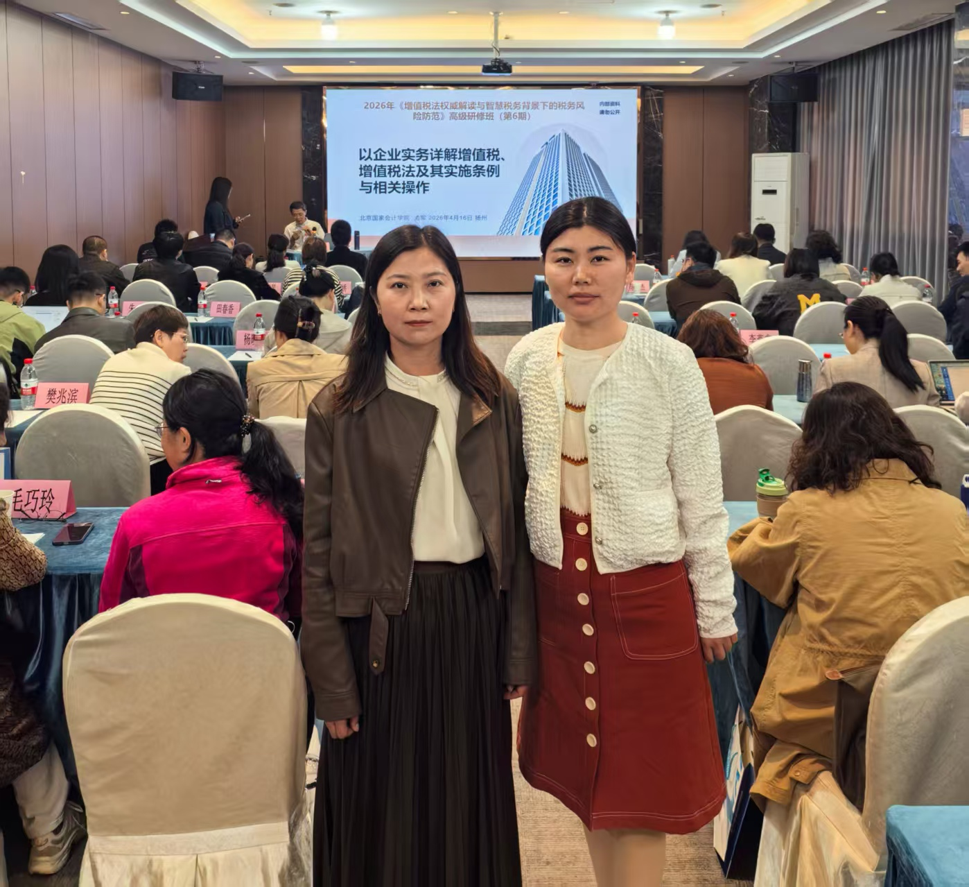 为精准把握《中华人民共和国增值税法》最新政策导向,提升教师税法教学与实务指导能力,推动应用型财会人才培养改革,2026年4月16日—17日,我校会计学院陈姣、陈诗杰两位老师赴扬州参加由北京国家会计学院主办的《增值税法权威解读与智慧税务背景下的税务风险防范》高级研修班(第6期)。