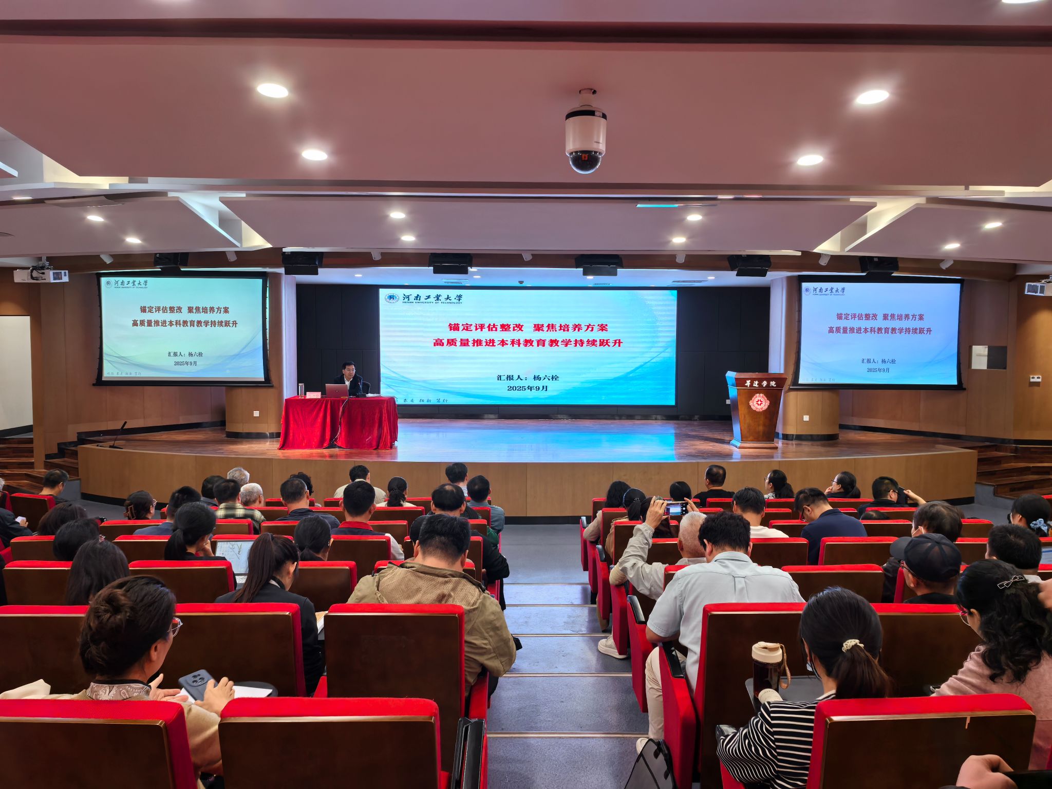 为扎实推进2025版人才培养方案制定与修订工作,切实保障我校本科教育教学内涵式发展和质量持续提升。9月18日下午,我校特邀河南工业大学教务处处长杨六栓教授作了题为《锚定评估整改 聚焦培养方案——高质量推进本科教育教学持续跃升》的专题讲座。主管教学校领导、各学院院长、教学副院长、专业负责人和专业骨干教师、教学秘书、校级督导团成员、教学质量监测与评估中心负责人、教务处负责人及科长参加了讲座。讲座由教务处...