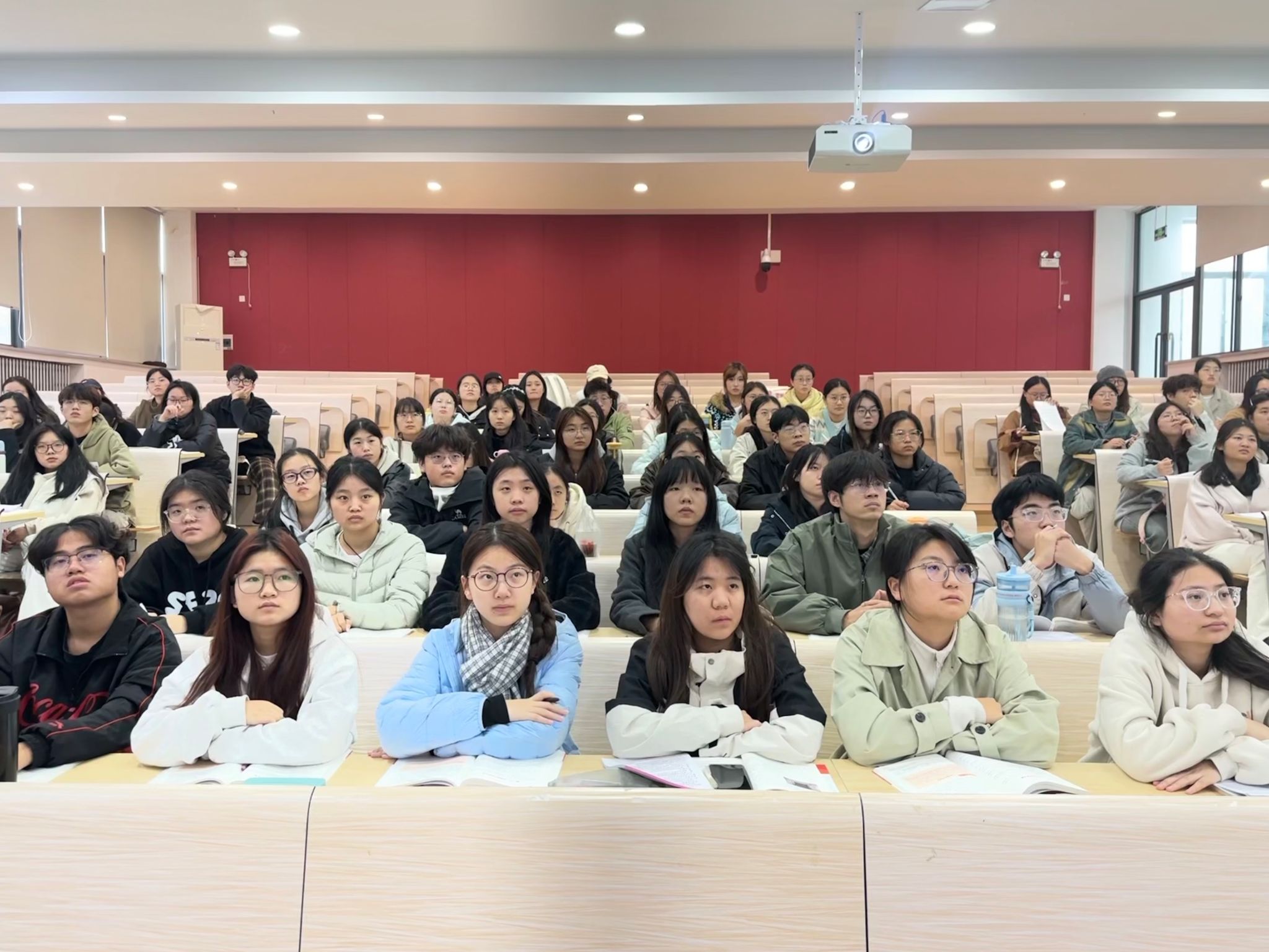 2025年11月6日,会计学院税收学专业学生党支部书记许震在教学4号楼118教室,为学院第二十二期入党积极分子讲授题为“义务权利,牢记心中——共产党员的义务与权利”的主题党课。