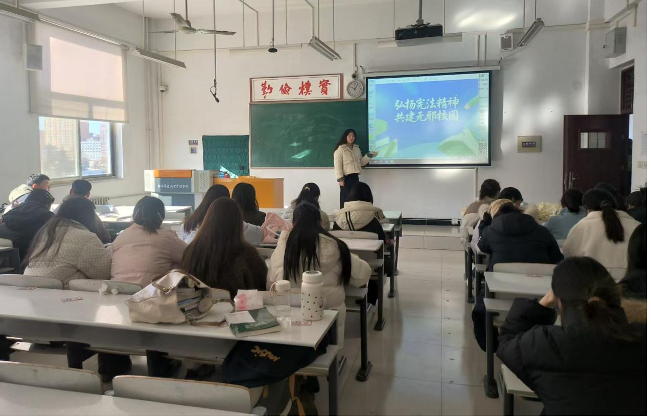 本次活动紧扣活动主题,开展了多种形式的宣传教育活动。学院以班级为单位全覆盖召开主题班会,通过宪法知识讲解、典型案例剖析、互动问答等形式,向学生深入阐述宪法作为国家根本大法的核心地位,大力弘扬宪法精神。同时,还系统讲解了邪教的危害性以及识别邪教的技巧,引导学生树立“不听、不信、不传、不参与”的防范意识。此外学院还通过悬挂宣传标语的形式,营造了“弘扬宪法精神 共建无邪校园”的活动氛围。