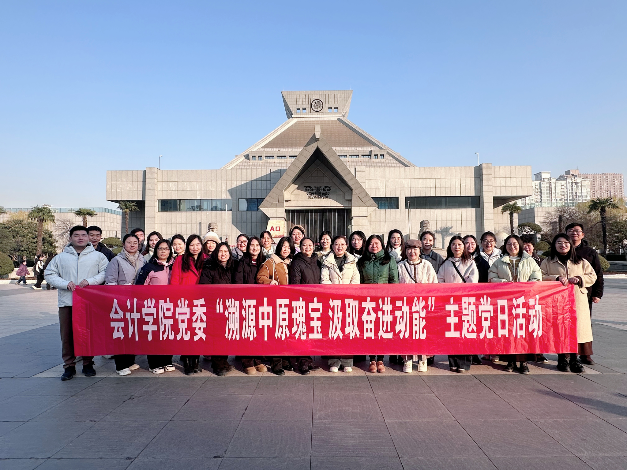 为深入了解中华文明起源与发展,深刻感悟中国共产党领导下的文化传承与发展,2025年12月27日,会计学院教师党员代表共赴河南博物院开展“溯源中原瑰宝 汲取奋进动能”主题党日活动。