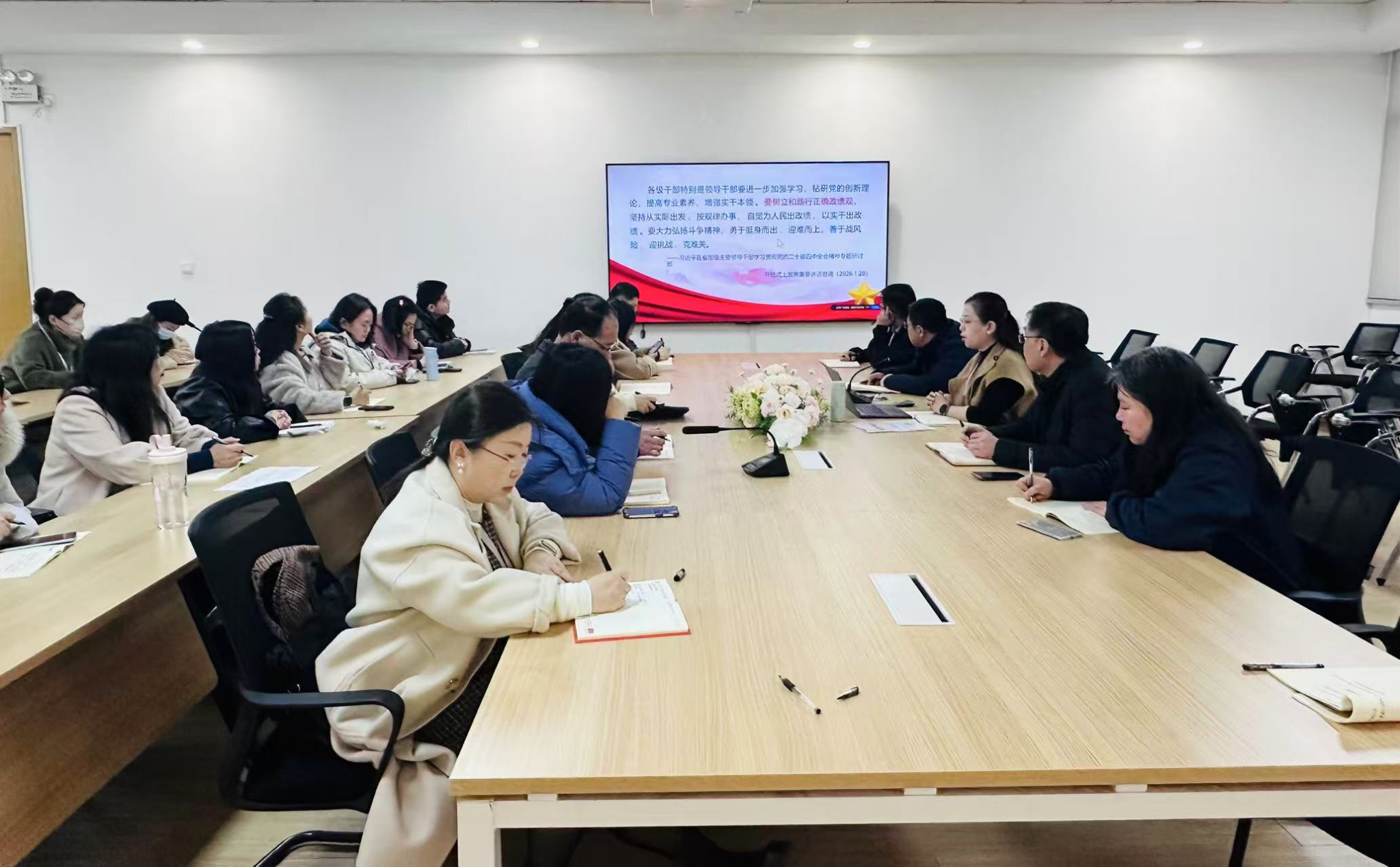参会人员结合岗位实际交流学习体会,一致表示将充分发挥“关键少数”示范作用,坚持读原著、学原文、悟原理,把学习成果转化为推动工作的具体行动,以正确政绩观引领学院各项工作提质增效。