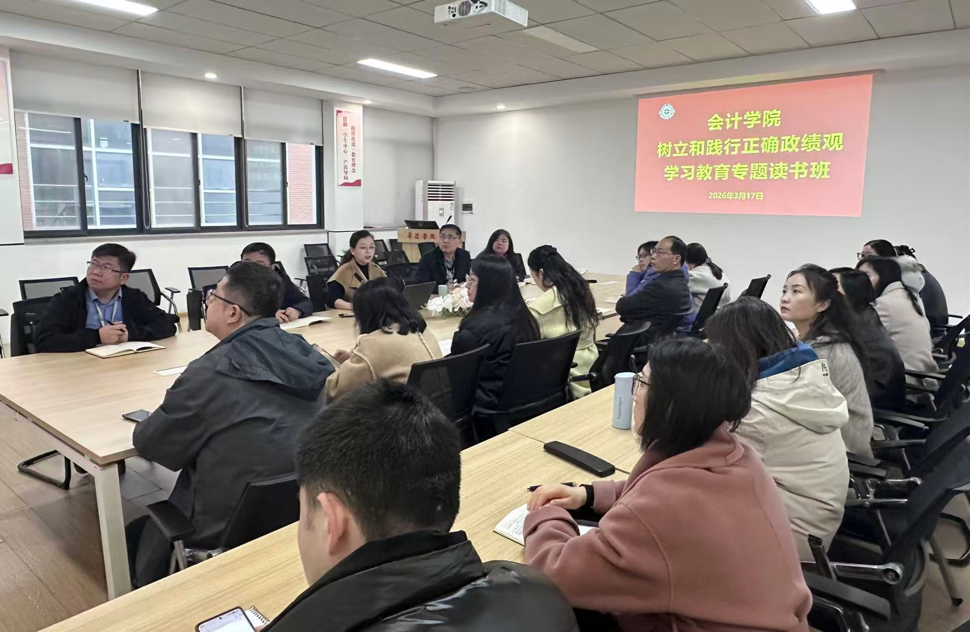 为深入贯彻落实学校党委关于开展树立和践行正确政绩观学习教育的部署要求,扎实推动学习教育与学院中心工作深度融合,3月17日—18日,会计学院党委举办树立和践行正确政绩观学习教育专题读书班。学院领导班子成员、全体党支部书记参加集中学习。学院党委书记讲授了专题党课。