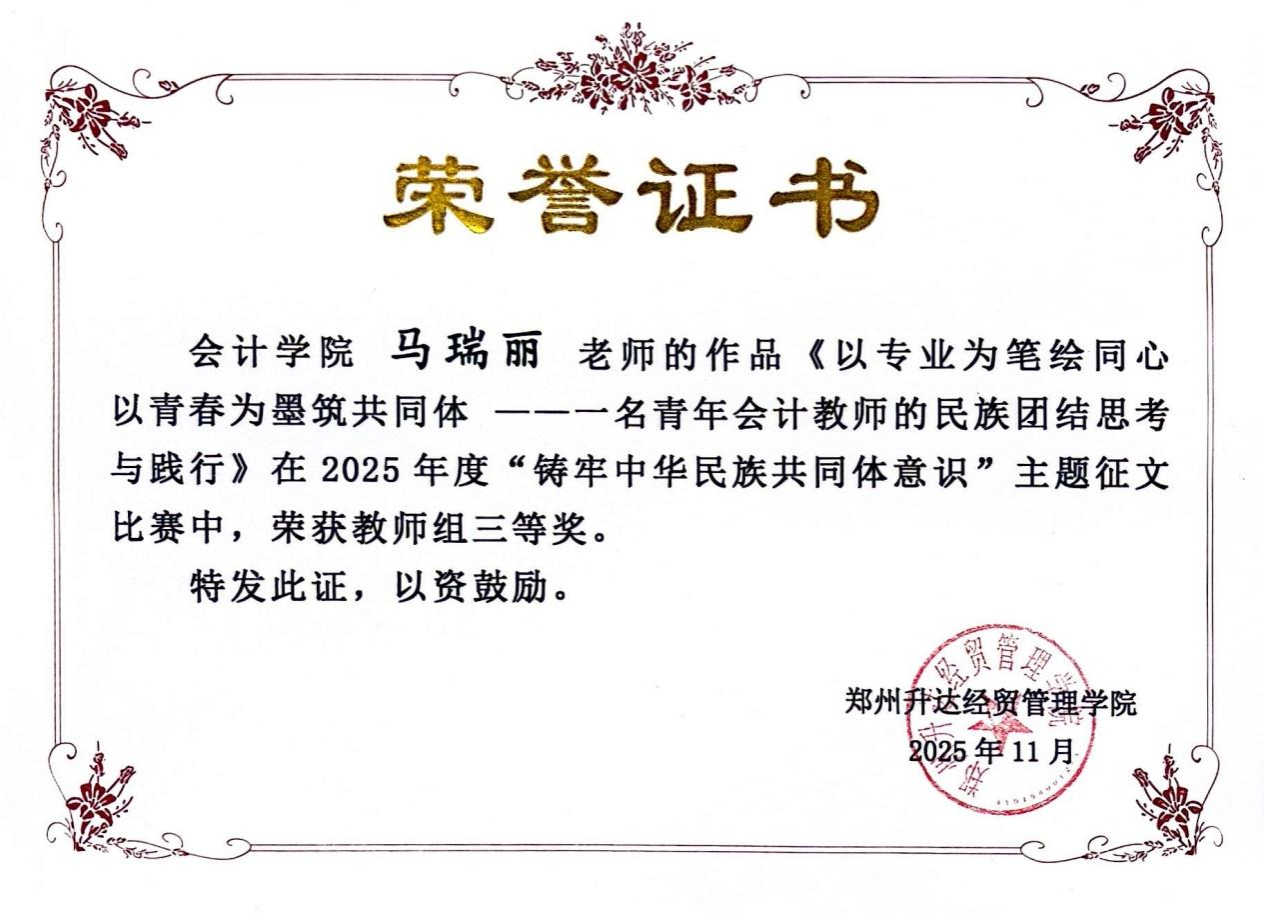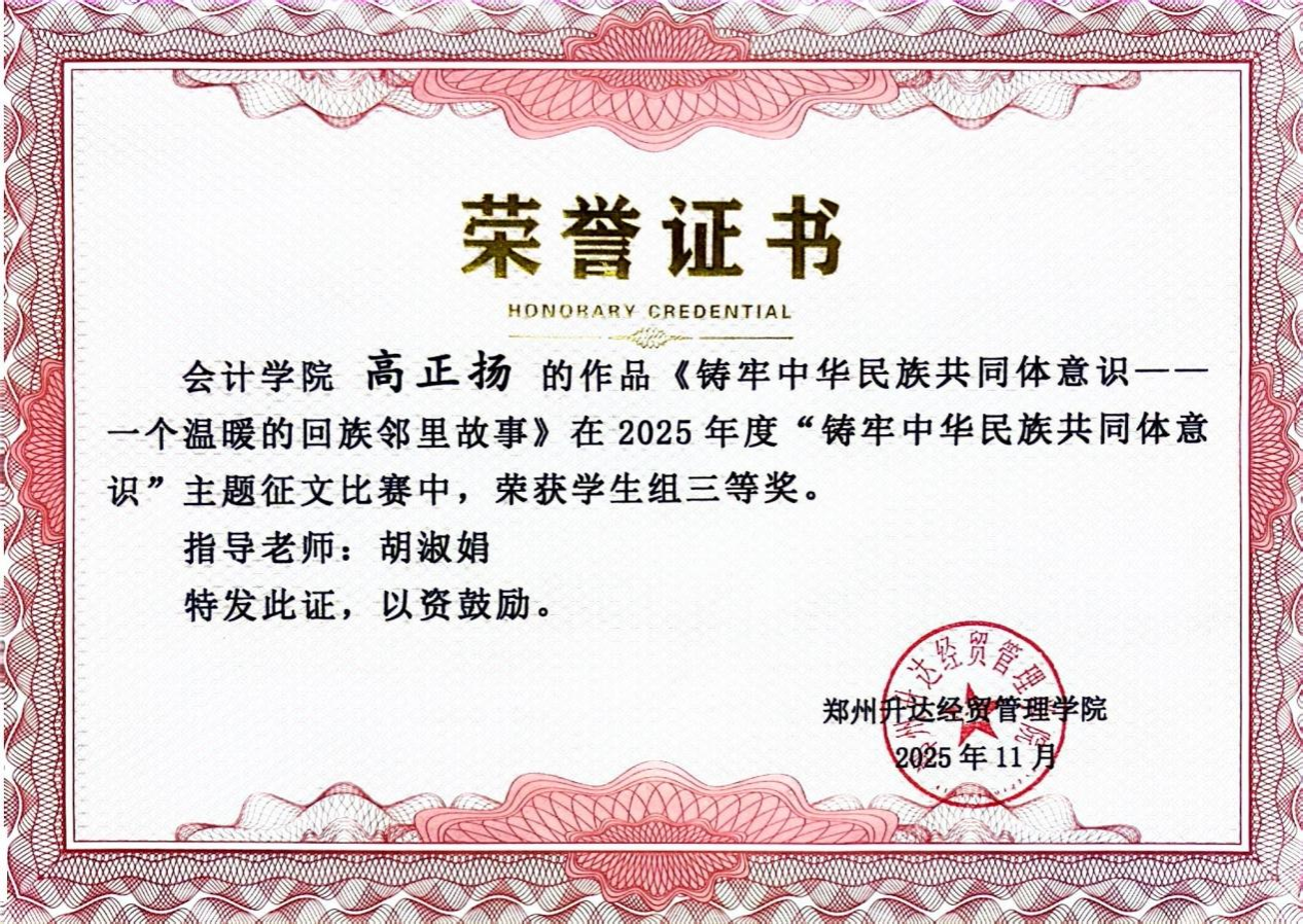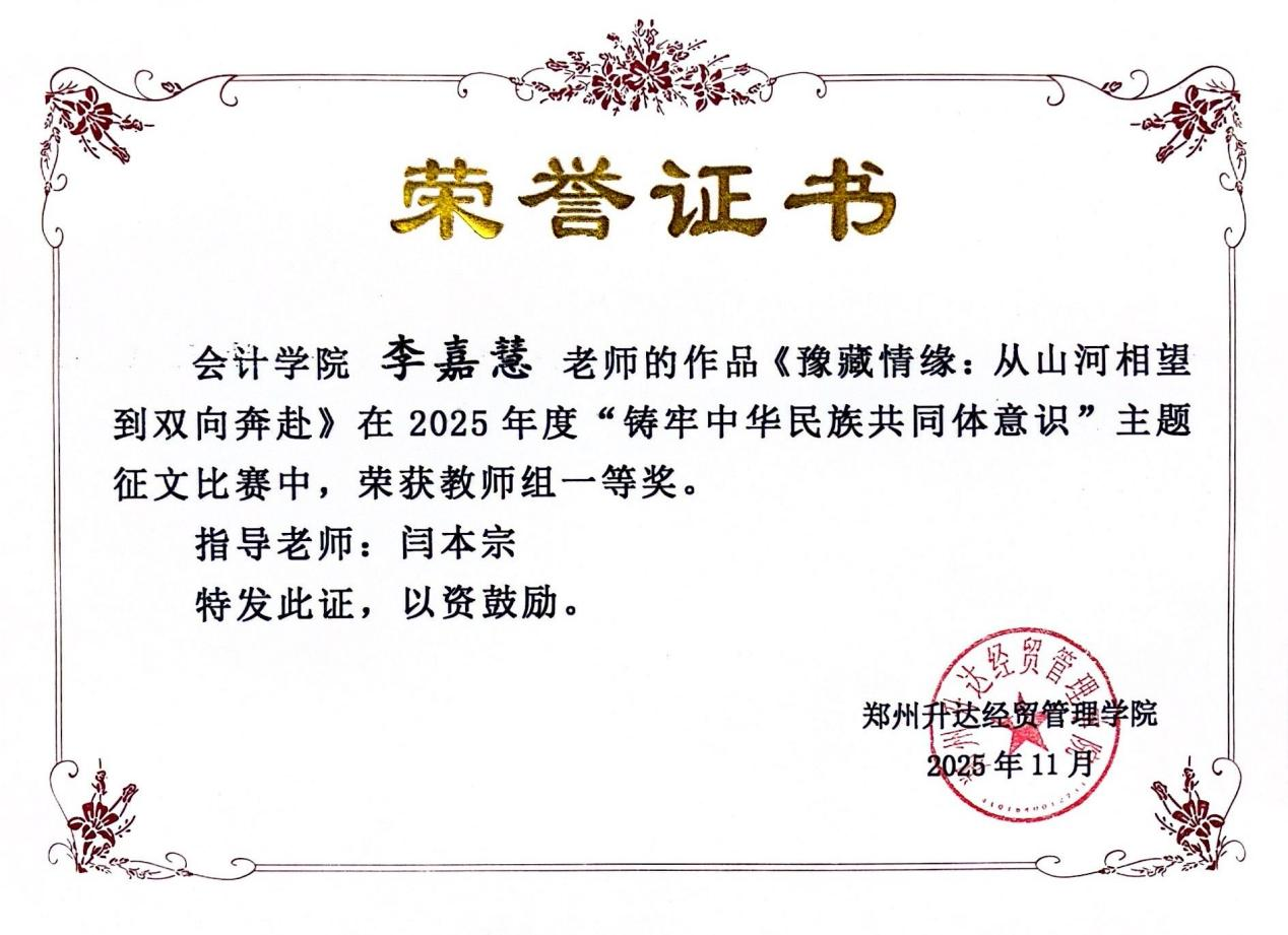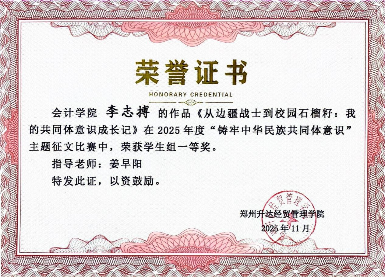会计学院在我校 2025 年度 “铸牢中华民族共同体意识”主题征文比赛中斩获大满贯