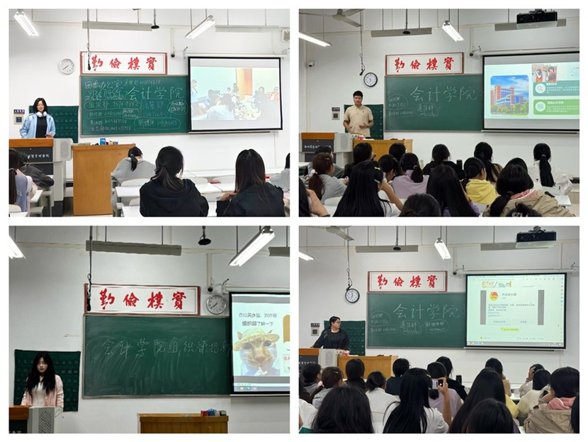 为完善会计学院学生工作体系,助力会计学院2025级新生快速融入大学生活。10月14日19:00,由会计学院团委主办的团学组织联合招新活动在时金楼和教四楼118教室展开。