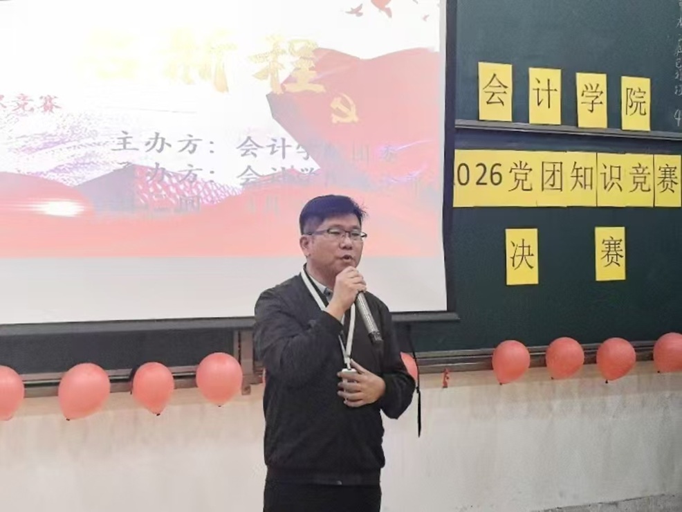 最后,陈刚老师对本场比赛进行总结。他首先向获奖队伍表示祝贺,向辛勤付出的工作人员和积极参与的参赛选手表示感谢。他指出,本次竞赛不仅是对会计学子党团知识掌握情况的一次全面检验,更是一堂生动的教育实践课,有效激发了全院学子学习党团知识的积极性和主动性。他强调,会计专业强调严谨、务实、诚信,这与党团精神中坚守初心、求真务实的内核高度契合,希望全体学子以本次竞赛为契机,持续深化党团知识学习,将理论学习与专业实践相结合,把拼搏精神、协作意识转化为钻研专业、锤炼本领的动力,以实际行动诠释青年学子的责任与担当。