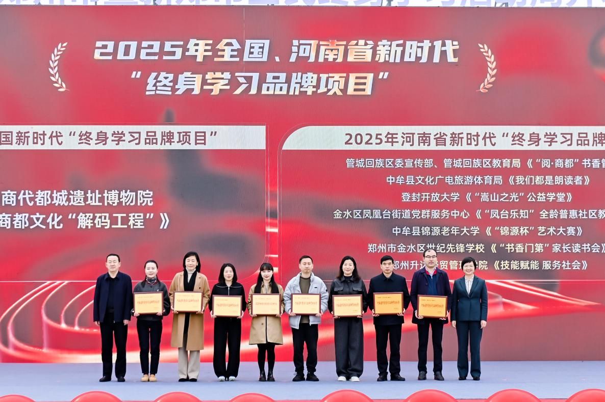 开幕式颁奖环节率先传来捷报——我校董事长王新奇凭借在终身学习领域的深度实践与突出贡献,获评2025年河南省“百姓学习之星”,在全场掌声中登台领奖。这一荣誉不仅是对王新奇董事长个人深耕教育、持续学习的高度认可,更彰显了我校对终身教育理念的坚定践行。