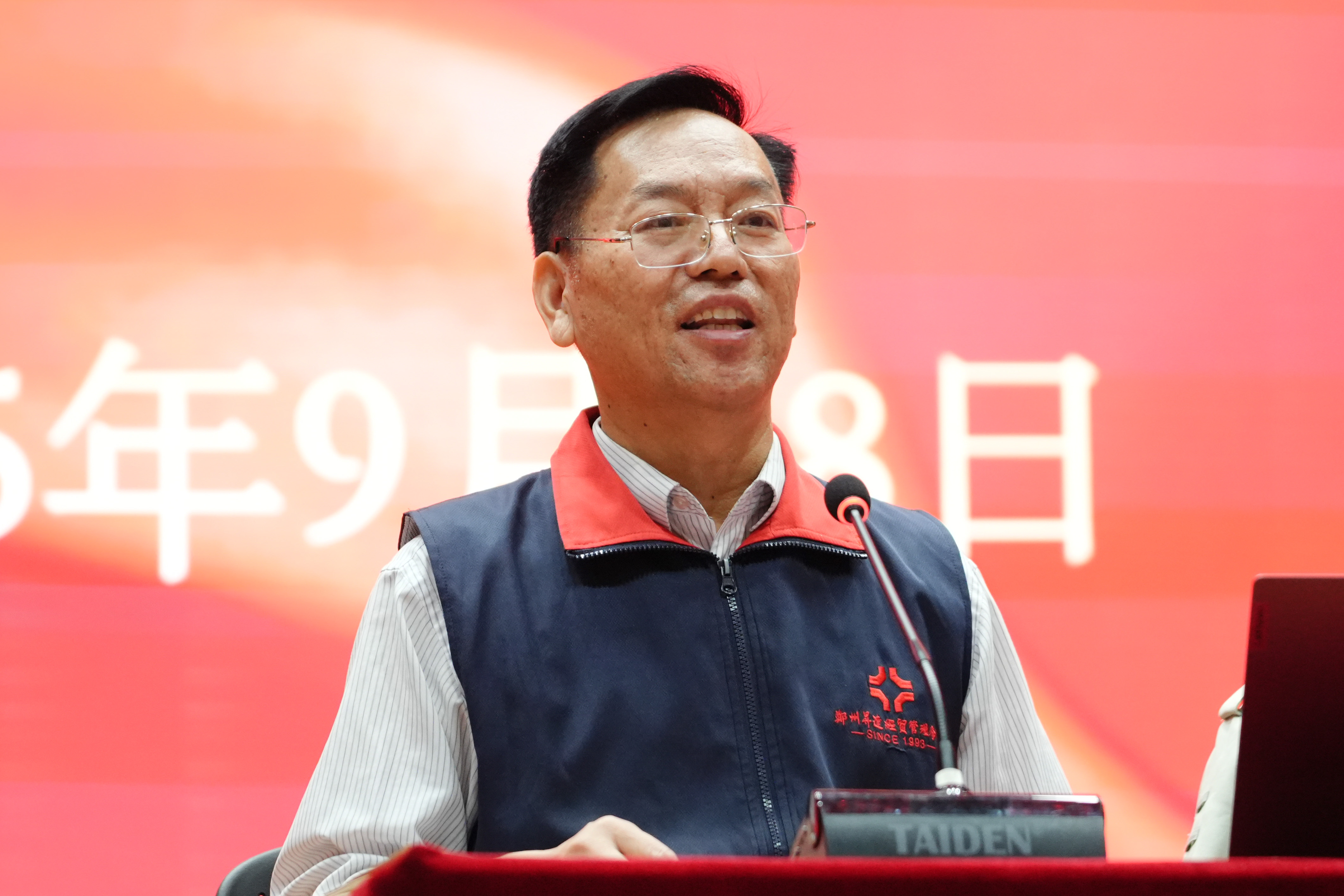 张金安致开幕词,他首先代表学校对一级战斗英雄史光柱同志和杨兆鹏政委的到来表示热烈的欢迎。随后,他详细介绍了史光柱同志的英雄事迹,并通过介绍校史与回顾升达国防教育举措将史光柱英雄的战斗精神与升达精神相融合。最后他希望2025级全体新生以此次报告会为契机,从英雄故事中汲取精神力量,在军训中,以英雄的坚持克服苦累、锤炼纪律;在大学里,以英雄的执着勤学善思、增长本领;未来走向社会,更以英雄的赤诚坚守初心、勇担使命,成长为有理想、敢担当、能吃苦、肯奋斗的新时代升达人。