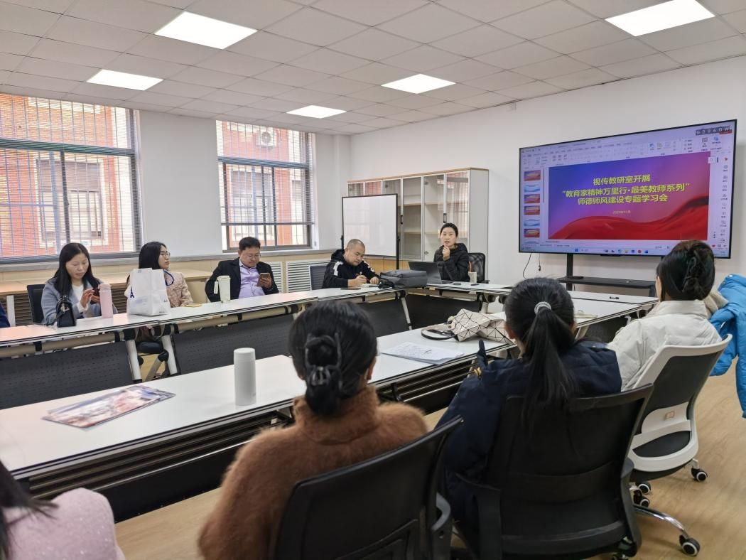 视觉传达设计教研室于2025年11月20日在商管楼108会议室组织全体教师,集中观看了“教育家精神万里行·最美教师系列”专题直播,深入开展师德师风建设学习活动。